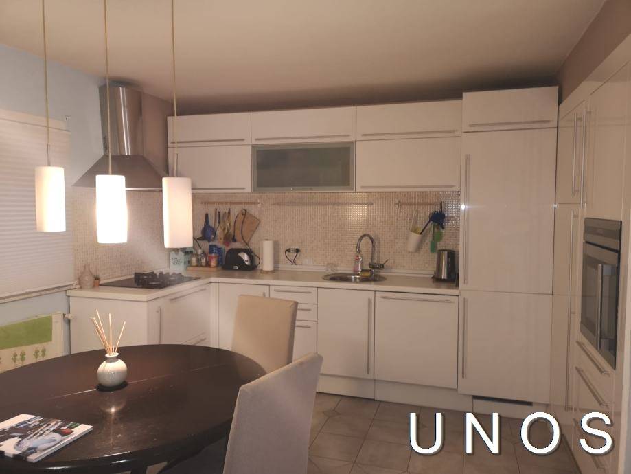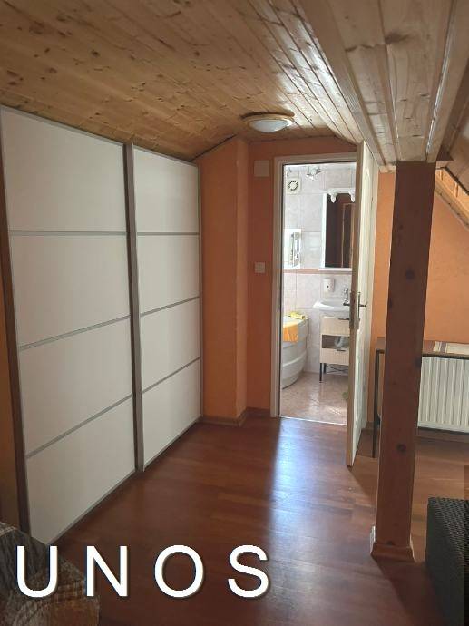 Trešnjevka, Cibona, prizemnica (4s) 97 m2, uređeno, namješteno, cent. et., PVC. Kuća je uređena i namještena betonske gradnje (1968.). Sastoji se od prizemlja i potkrovlja. Ima tri spavaće sobe, dvije kupaonice s wc-ima, dnevni boravak s kuhinjom i prolaznom sobom koja može služiti kao garderoba. Grijanje centralno etažno plinsko. Klimatizacijski uređaji.