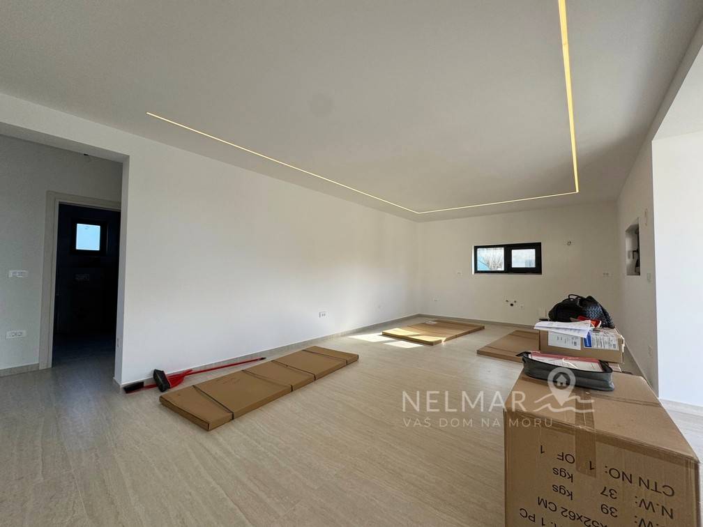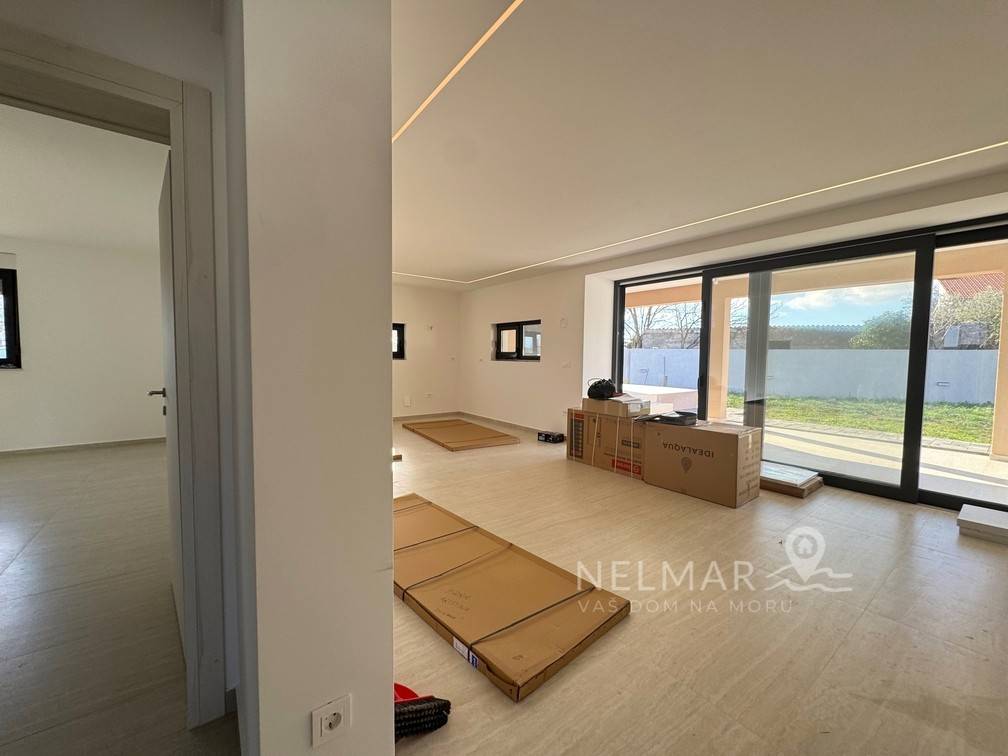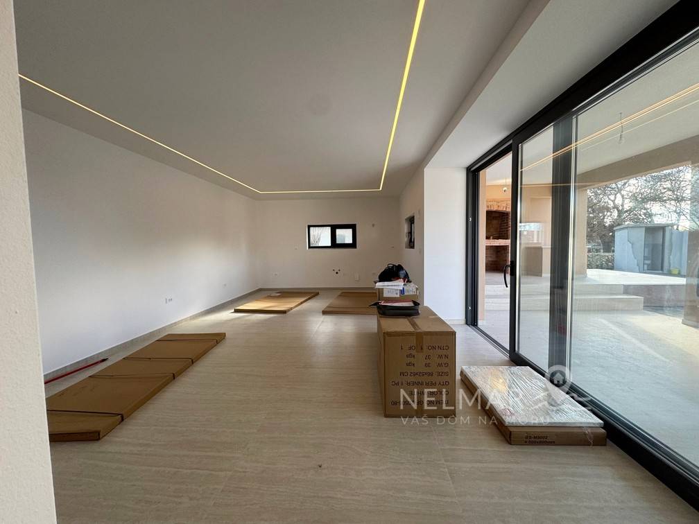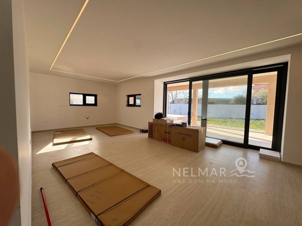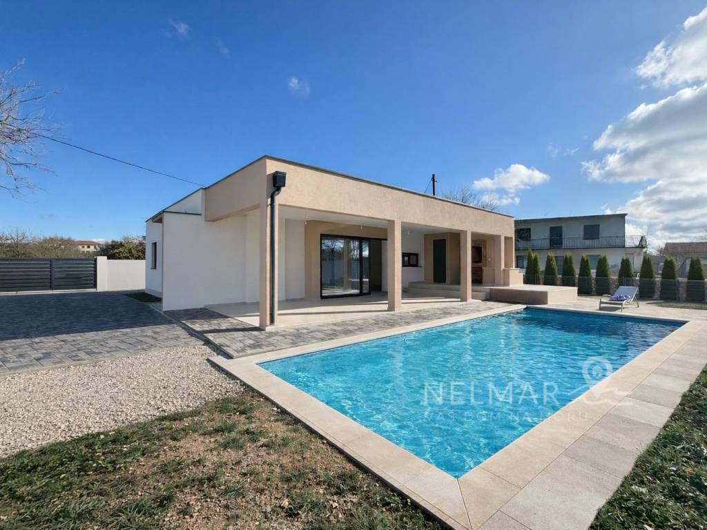 In a quiet and pleasant location in Briševo, just 10–15 minutes drive from Zadar, a modern single-storey house is for sale, designed with a clear idea – quality family life, but also flexibility for those who want to work from home or combine work and family.