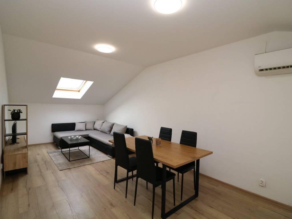 The apartment was completely renovated in 2025 (except for the kitchen) - new floors, Velux roof windows were installed, the bathroom was renovated, all installations were changed, and the roof of the building is also completely new with high-quality insulation. It is equipped with an inverter air conditioning heating and cooling system.