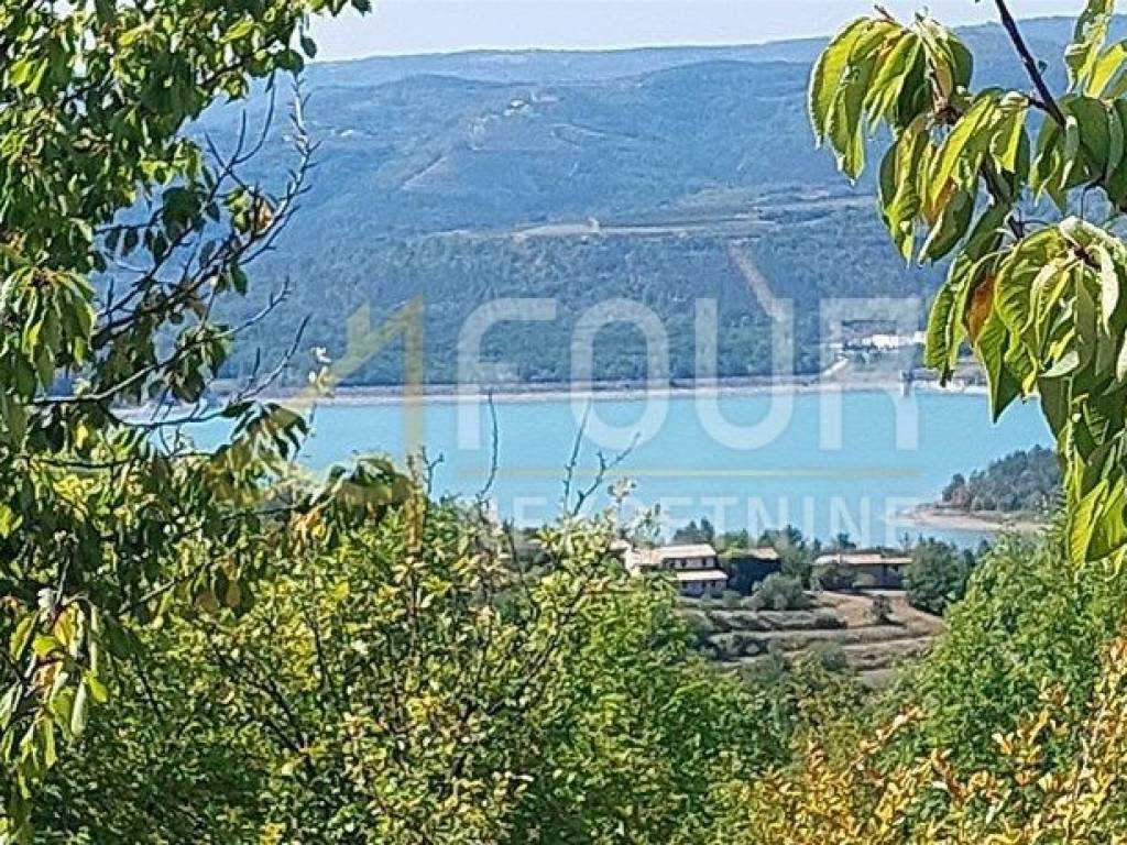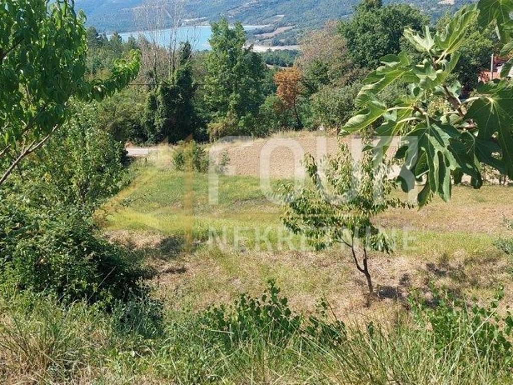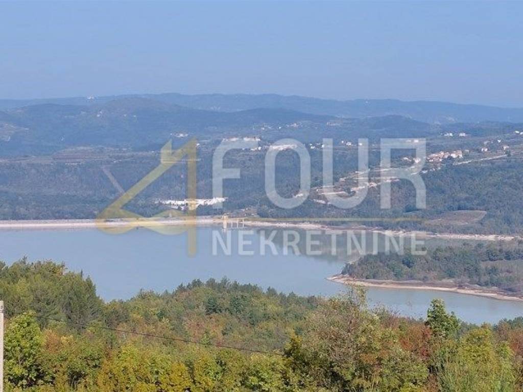 Sa zemljišta se pruža lijep pogled na jezero, Ćićariju i okolna brda.