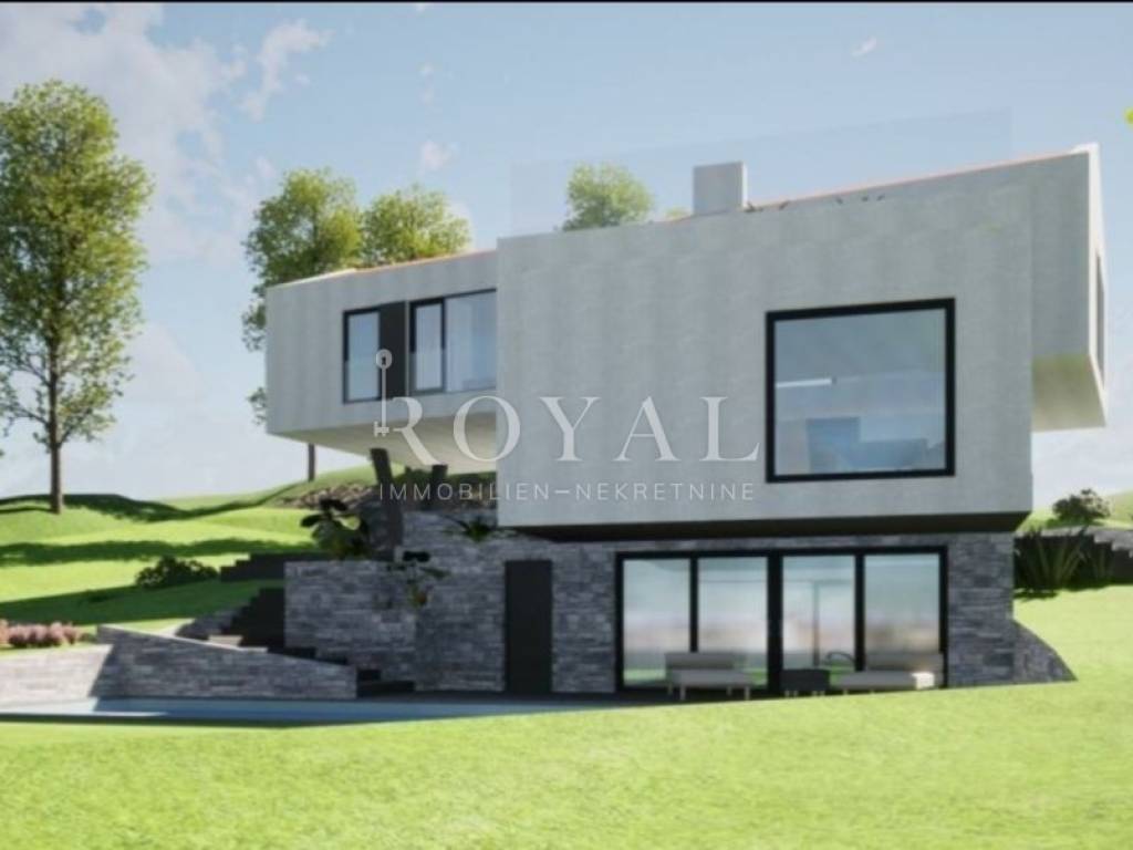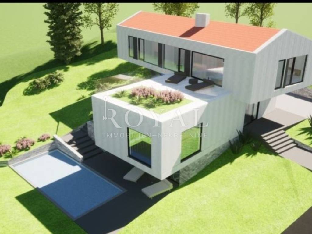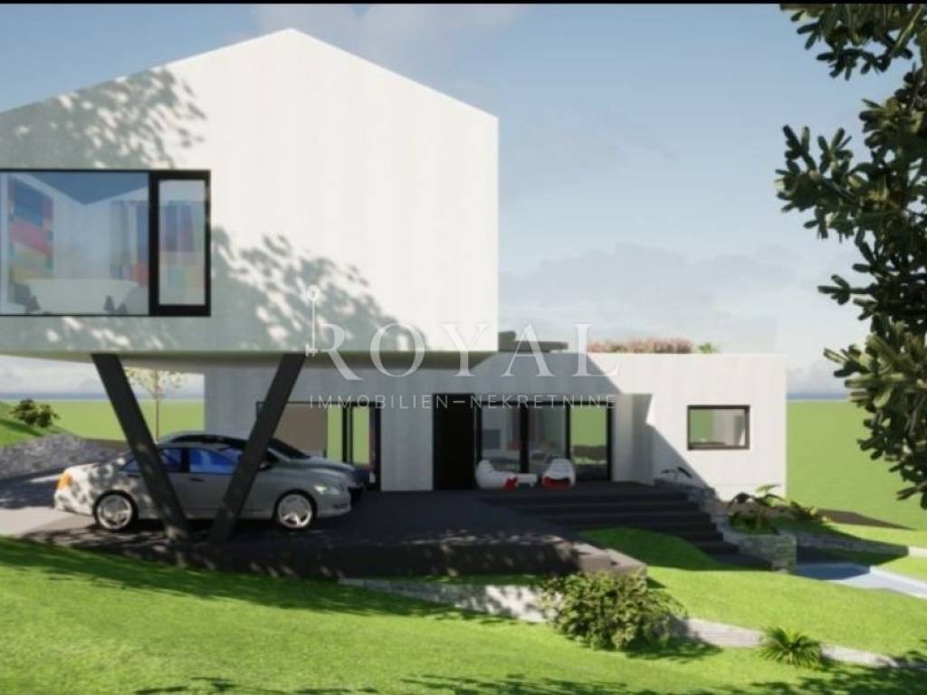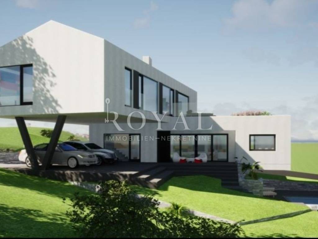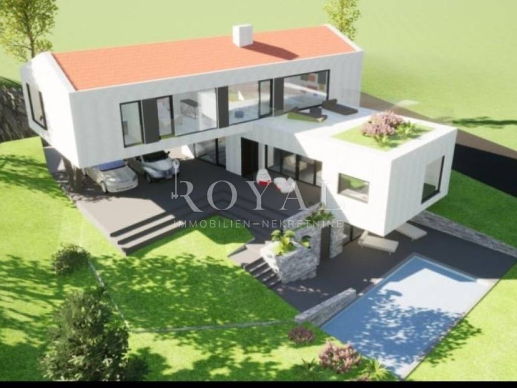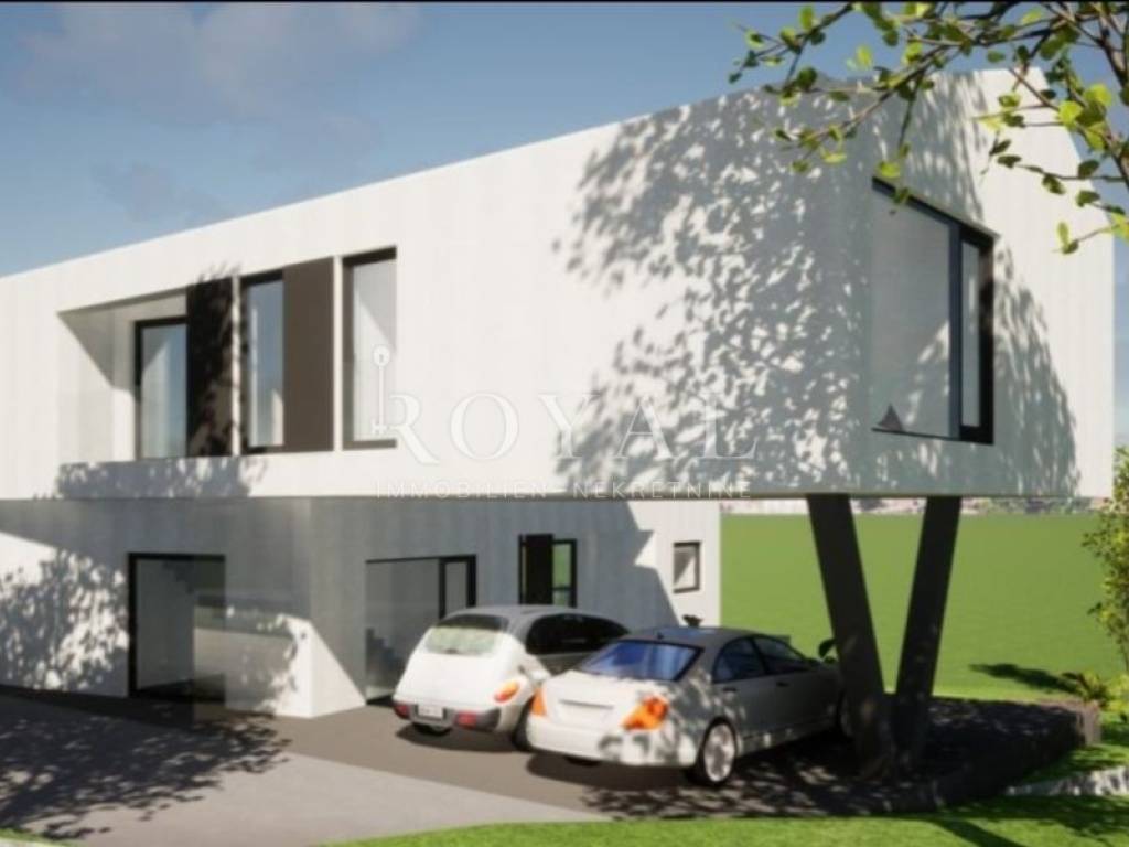 Vrbnik, građevinsko zemljište u centru mjesta, idejno rješenje za dvojnu kuću s dvije stambene jedinice, ukupno 4 stana, cca 600 metara od mora.