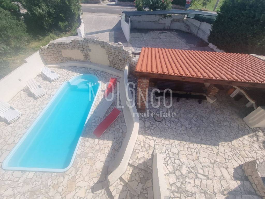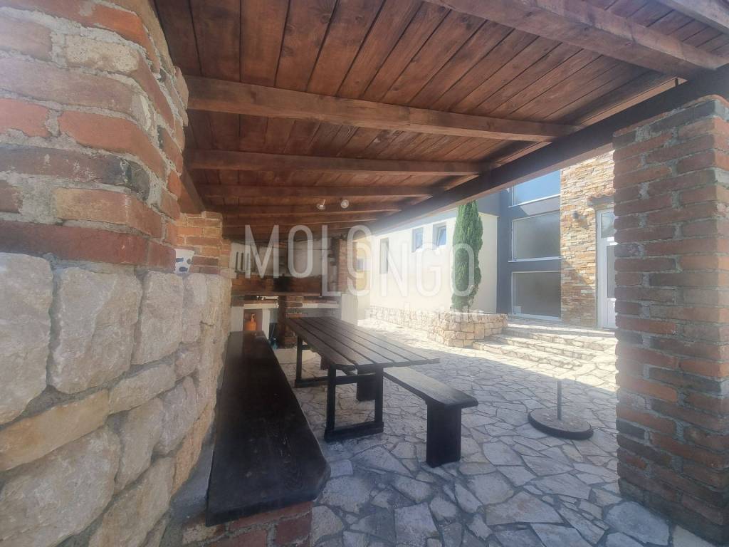 The villa exudes elegance, blending perfectly with the environment. Surrounded by a beautiful Mediterranean garden, this villa offers an oasis of peace and privacy. The heart of the property is a spacious swimming pool that offers refreshment on hot summer days, and next to it there is also a charming outdoor kitchen with complete equipment and a barbecue, creating an ideal environment for socializing with family and friends with fragrant gastronomic pleasures.