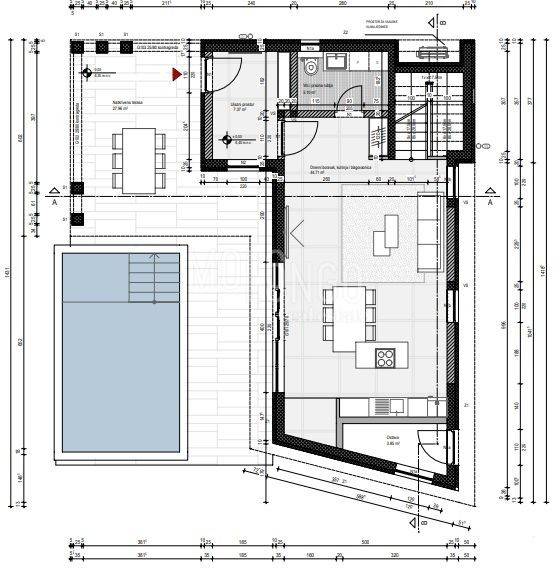 In a quiet and attractive place not far from Medulin, just 100 meters from the coast, a modern house is for sale under construction, with the possibility of completion on a "turnkey" basis. This exceptional property, with a total area of ​​189.85 m², was conceived as an ideal home for a family or as an investment for a vacation.