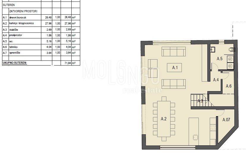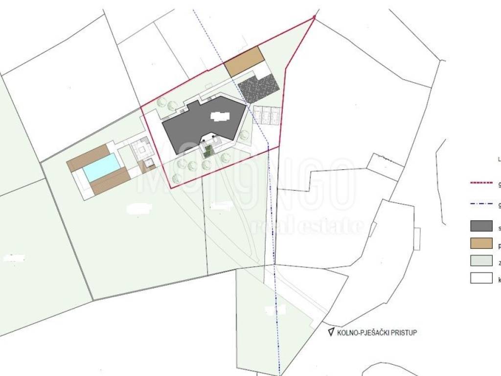 On the plot there is a house built in 2000, divided into a basement, ground floor and first floor, with a valid building permit for renovation into a luxury building with six bedrooms, each with its own bathroom. The project also includes a wellness area with a sauna, a spacious roof terrace with a panoramic view, a spacious living room, a kitchen and a playroom.