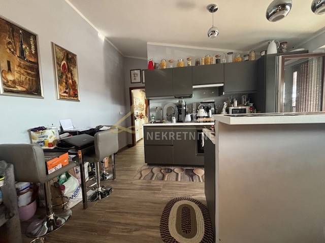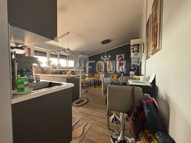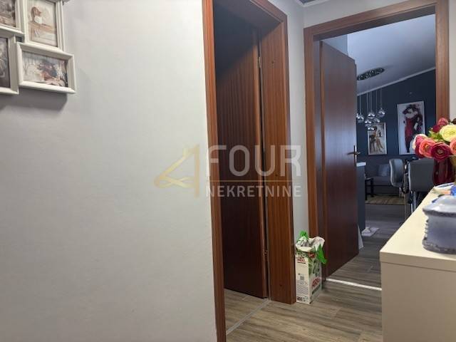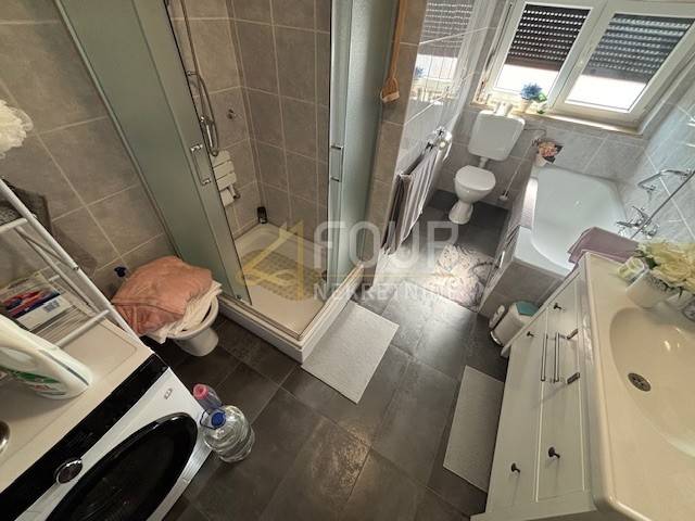 In Novi Vinodolski, a one-bedroom apartment with a living room, covering 66 m², is for sale in a residential building in the very center of the town. It features a functional layout with an entrance hall, kitchen, bathroom, living room, bedroom, and a loggia offering an open view of the sea. Air conditioning and electric central heating ensure a comfortable stay throughout the year. The apartment has been maintained and partially renovated, with a new layer of concrete and flooring.