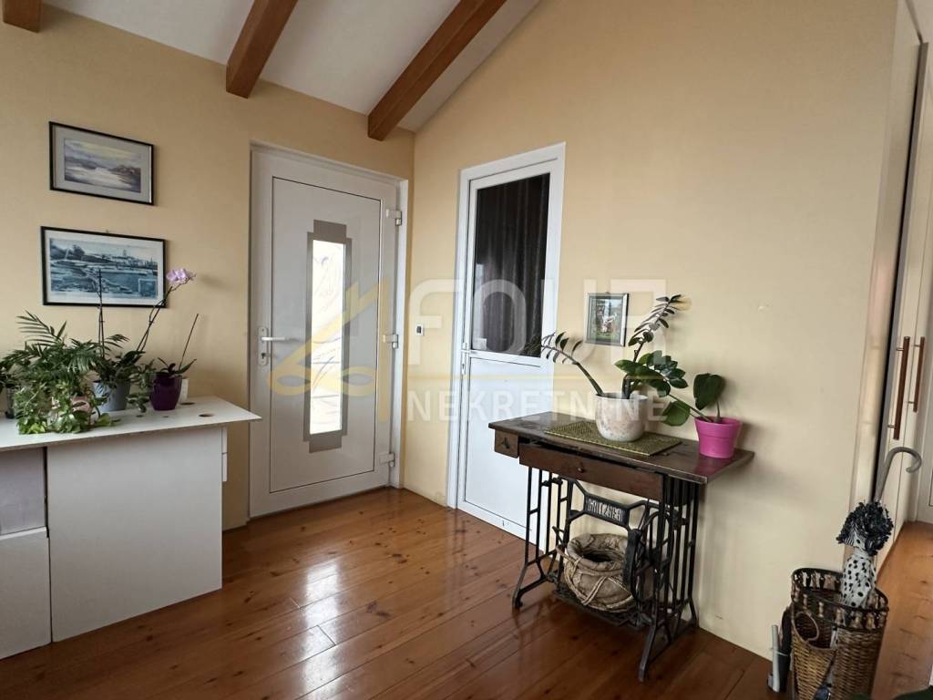 In an attractive location in Trsat, a two-level apartment with a total area of 120.80 m² is for sale, situated on the first floor and in the attic of a family house. It is southeast oriented, airy and sunny, with a terrace and balcony that provide a pleasant outdoor living space. The property also includes an outbuilding in the yard of 31.10 m², arranged and currently functioning as an apartment, as well as a nicely landscaped garden with a barbecue area of approximately 50 m².