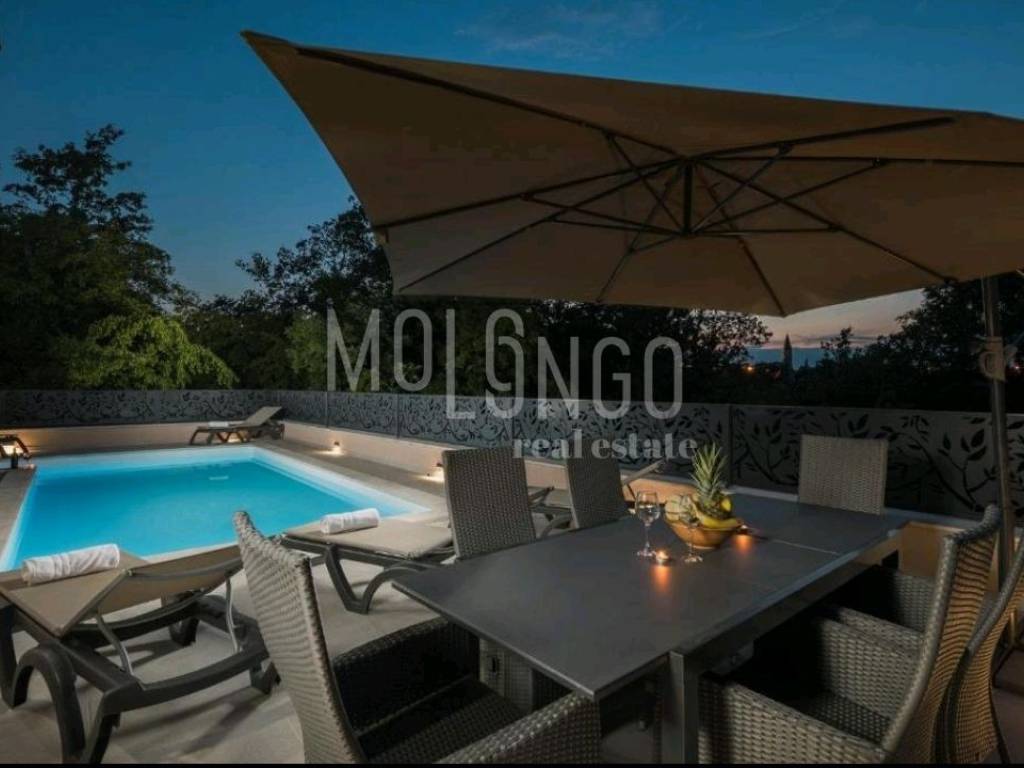 The house on the northwest side was built as a luxury holiday villa with a swimming pool. The villa is spread over two floors and has two parking spaces in front of the house. The spacious garden with barbecue and swimming pool is perfect for family gatherings and outdoor enjoyment. The interior of the house is air-conditioned and equipped with a modern heating, ventilation and air conditioning system, ensuring comfort throughout the year.