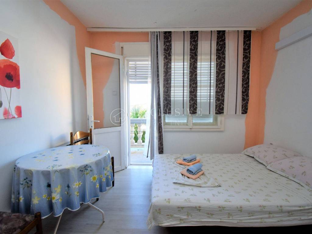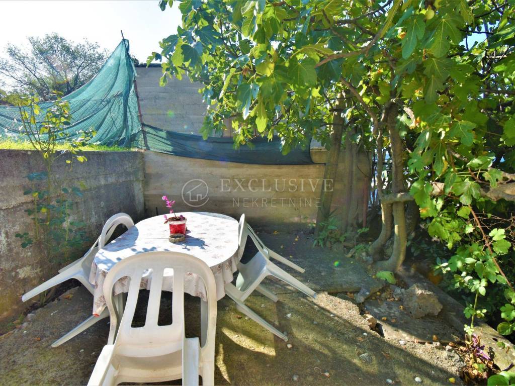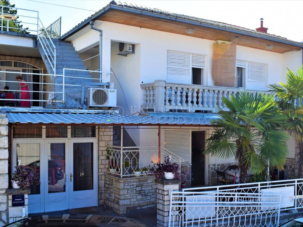 The house itself consists of: - ground floor which houses a one bedroom apartment with a large terrace and a garage that has been converted into a studio - floor consisting of 3 studios and one two-bedroom apartment. One studio has a separate terrace, while the other studio and two bedroom apartment have access to a balcony overlooking the sea and the island of Krk.