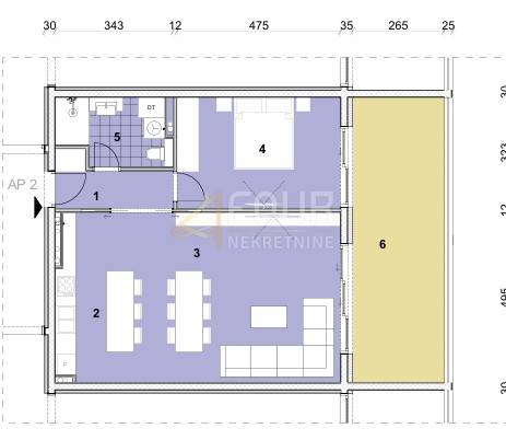 This new building, with an area of 82.83 m2, stands out for its excellent room layout and high-quality construction. The apartment consists of a living room with a kitchen and dining room in an open space concept, a comfortable bedroom, a bathroom, a hallway and a covered terrace with a jacuzzi.