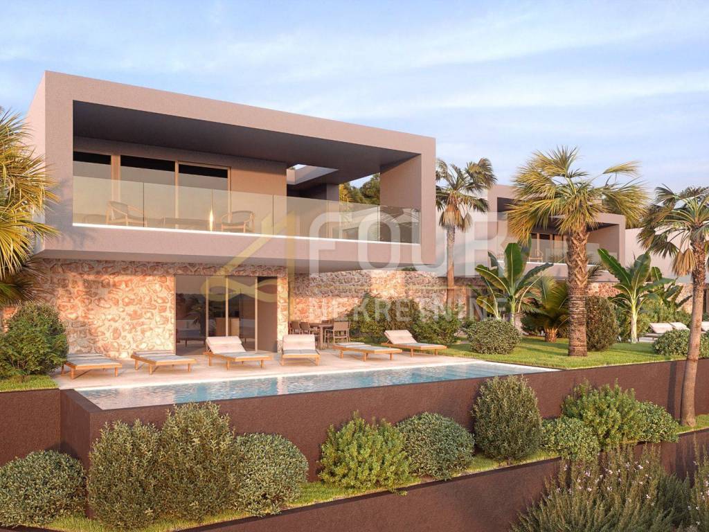 The villa under construction is spread over two floors, the ground floor and the first floor with a total area of ​​388.50 m2, of which the ground floor has a total area of ​​143.50 m2 and the first floor has a total area of ​​245 m2. This beautiful villa consists of three bedrooms, each with its own bathroom and access to a spacious terrace. On the ground floor there is also a hallway with a storage room and a staircase leading to the first floor.