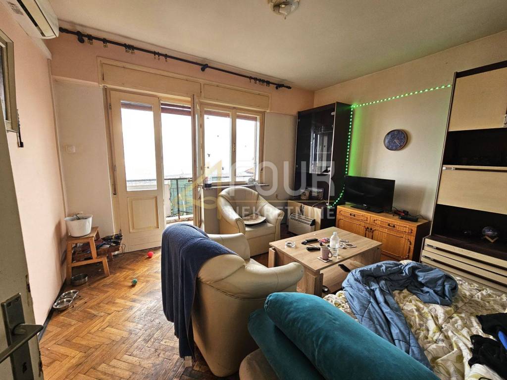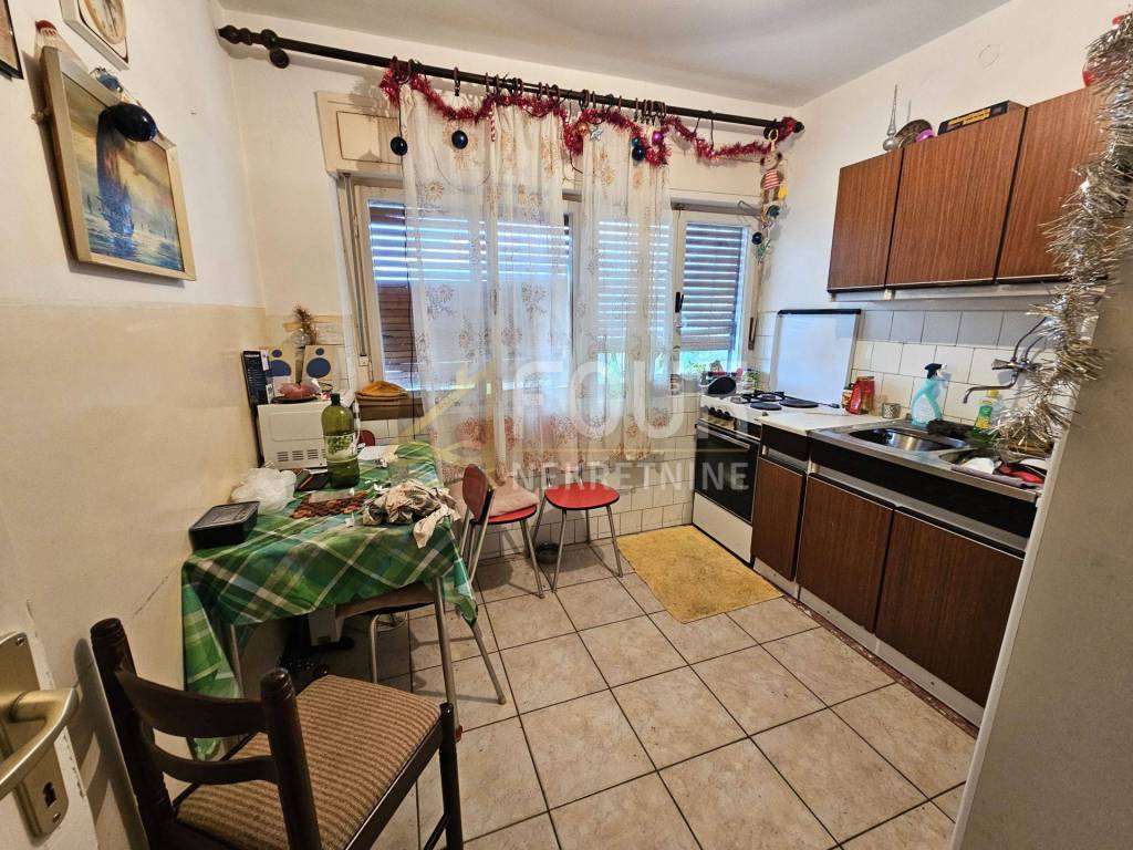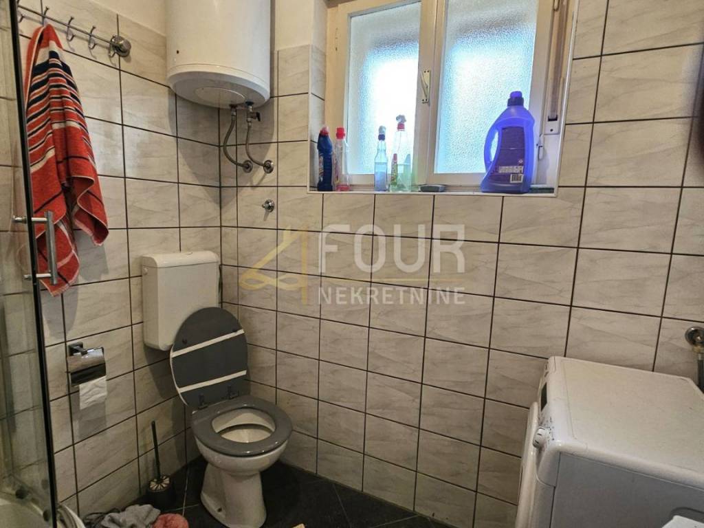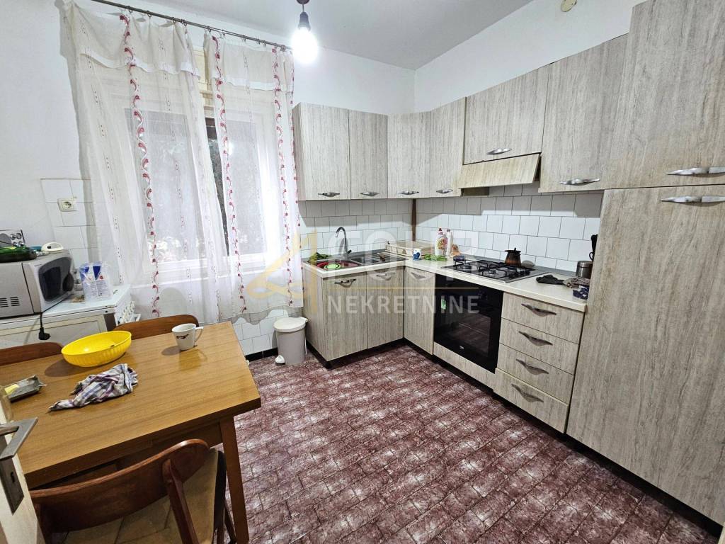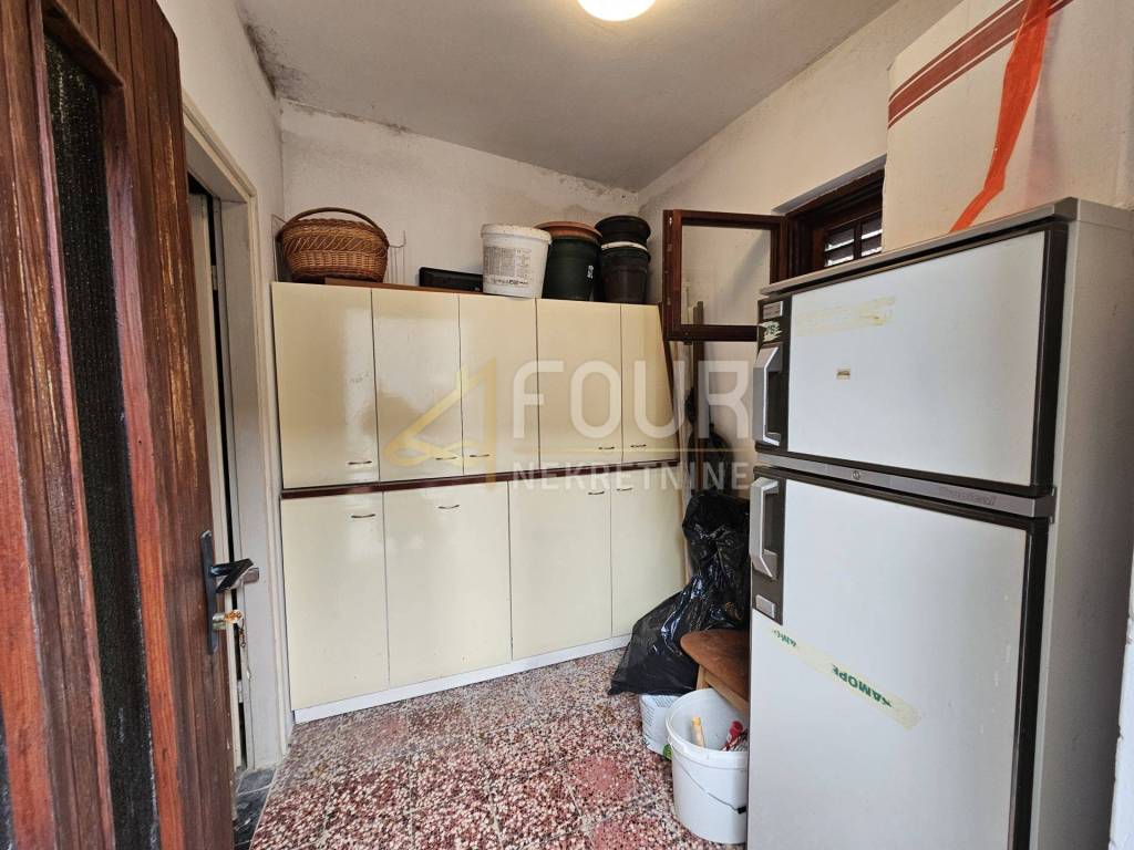 The house is in its original condition and needs renovation, which offers a lot of potential for renovation. It is equipped with air conditioning, has wooden joinery. An external staircase connects the floors.