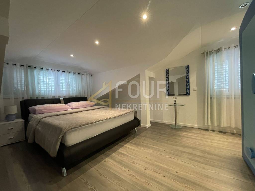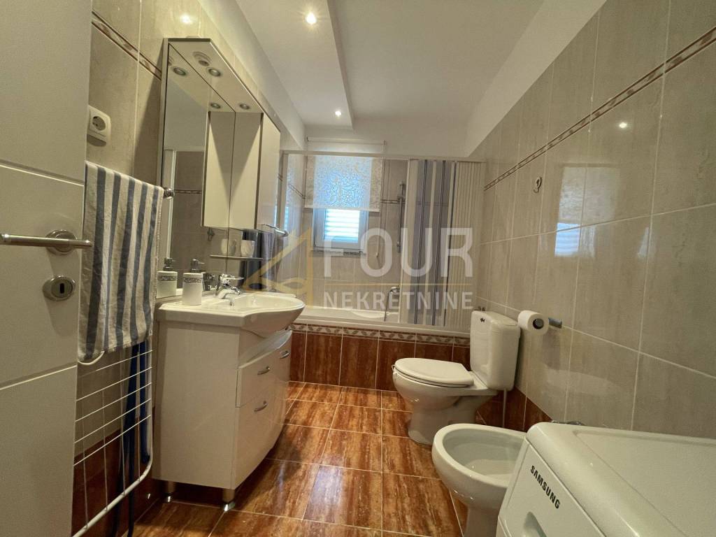 We offer a nice two-story apartment of 85.33 m2 with a balcony and a view of the entire Kvarner. On the lower floor there is a hallway, a kitchen with a dining room and a living room in an open area with access to a balcony, a bedroom and a bathroom. On the upper floor there is an entrance hall, two bedrooms and a bathroom. The living space is air-conditioned and has installed PVC joinery. It has a secured parking space. Peaceful location!