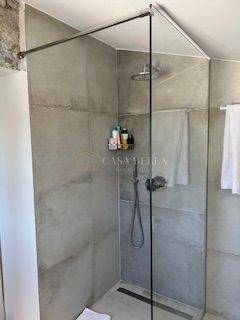 Spanning over 30,000 m², the property is divided between well-maintained olive groves and a Mediterranean forest, featuring pine trees and maquis vegetation. The main building is a 200 m² villa, with three bedrooms and three en suite bathrooms. The living room, however, is particularly remarkable, offering a generous space that is ideal for both relaxation and entertaining.