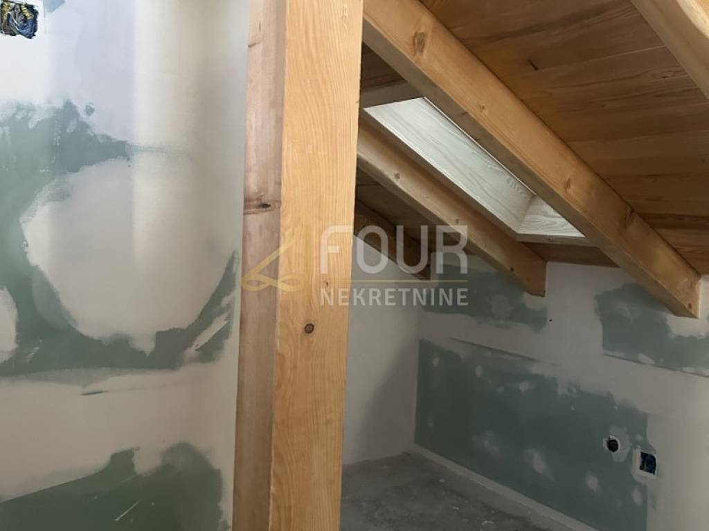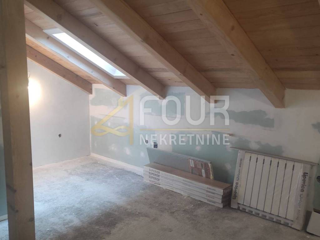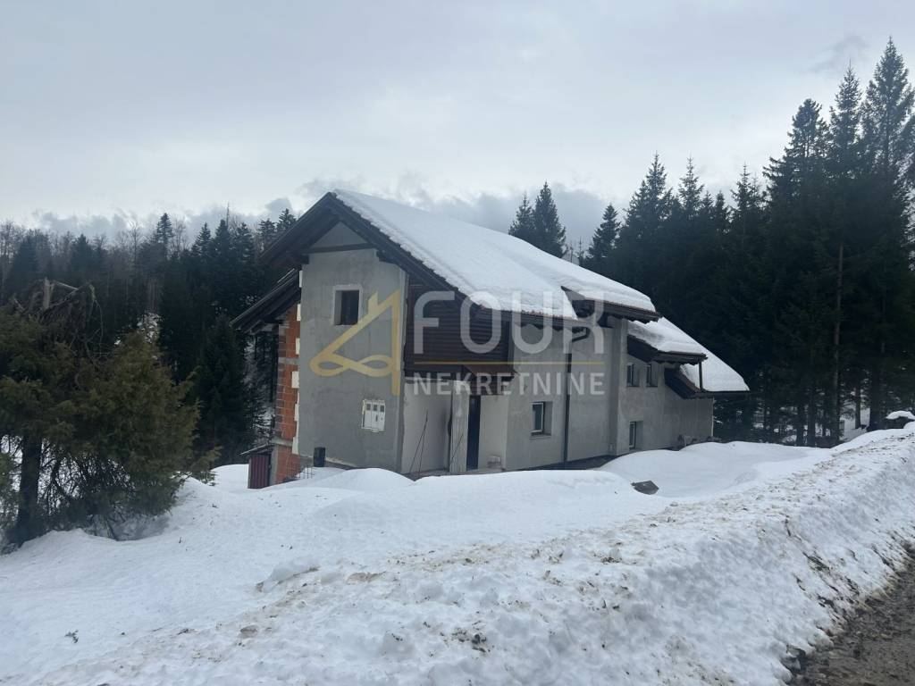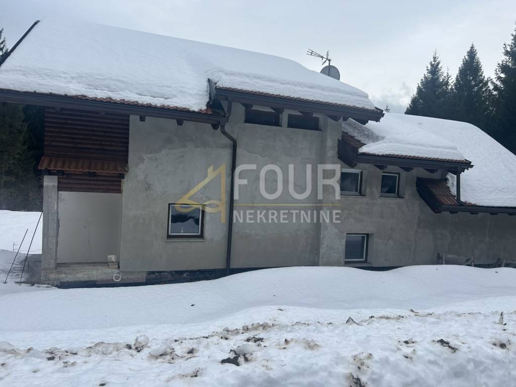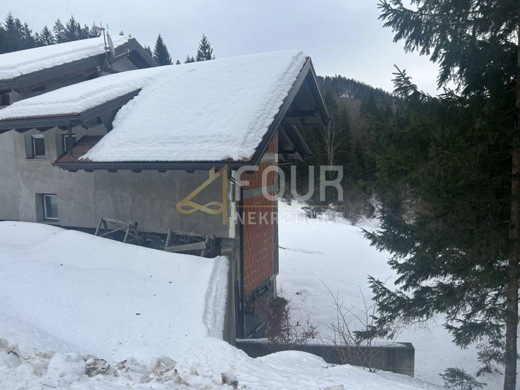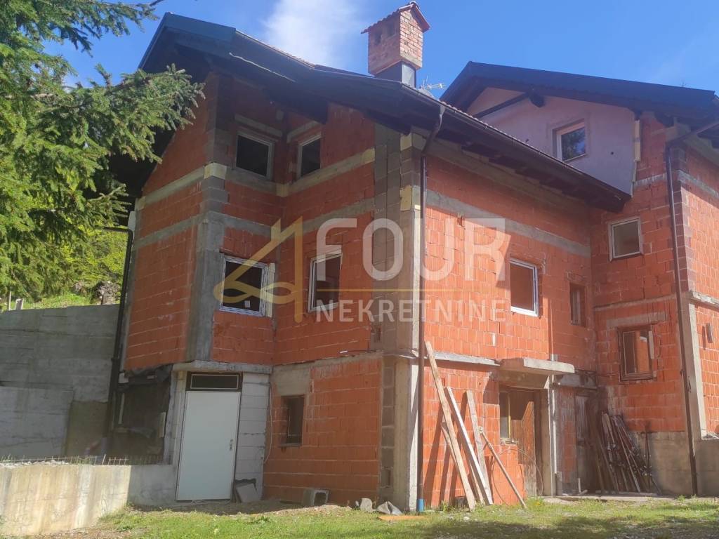 A standalone house located on a large plot of 2,982m2, surrounded by untouched nature, in seclusion! This unique location ensures privacy and peace, with no possibility of further construction nearby - green belt. This spacious house of 355.14m2 is spread over three floors and is currently in shell construction (low shell construction except for one apartment). The house is already 80% completed, divided into 5 separate apartments (1 bedroom + living room), each with an area of around 40m2.