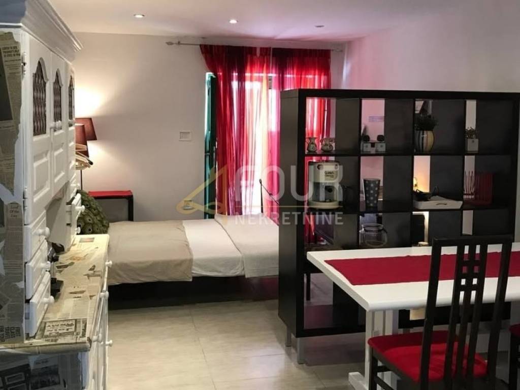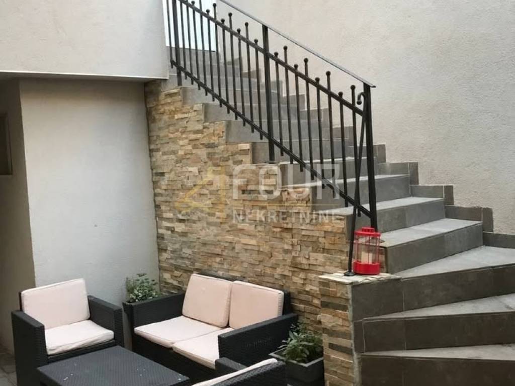 The house consists of two residential units – on the ground floor there is a studio apartment with two entrances, which can be converted into a business space if needed, while on the upper floor there is an apartment (entrance area, open-plan kitchen with dining and living room, two bedrooms and a bathroom).