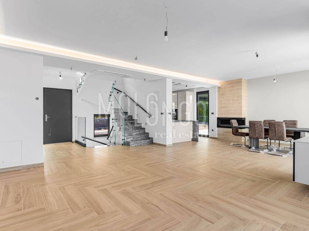 Located on the western coast of the island of Krk, in a quiet part of Malinska, we present to you a modern, high-quality semi-detached house of 183 m² with a landscaped garden of 312 m² and unobstructed sea views—even from the ground floor. This property offers a blend of comfort, privacy, and top-tier design, ideal for family living or tourist rental.