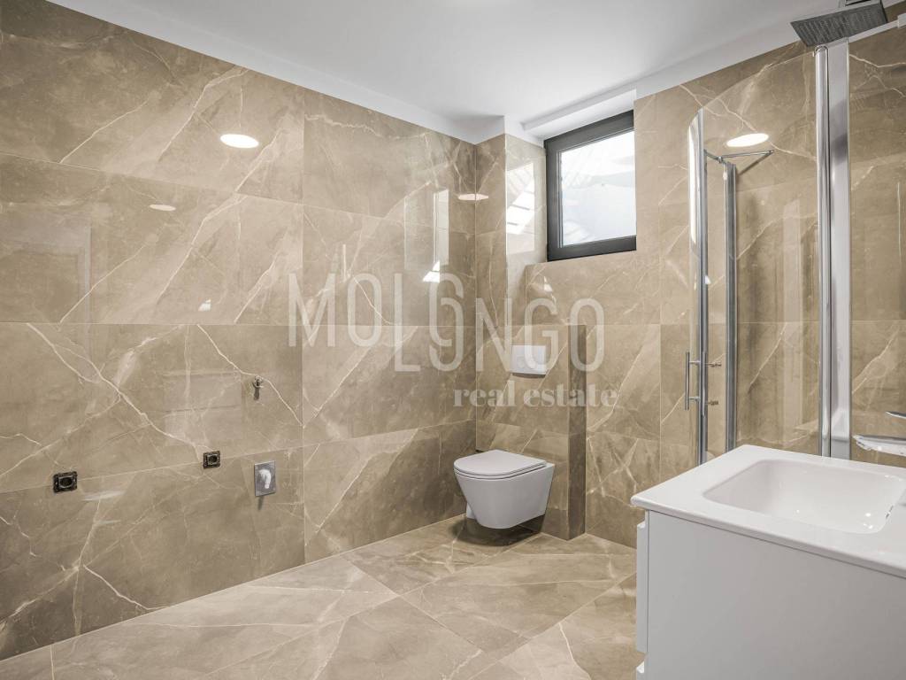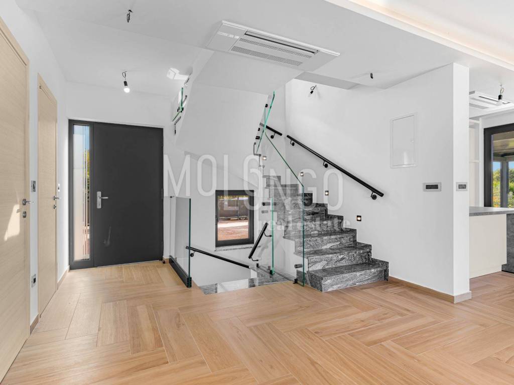 Ground Floor – 63 m²: Spacious open-plan living room, dining area, and a top-quality Italian "NOLTE" kitchen, access to a large terrace with electric awning and sea view, guest toilet, and storage room.
