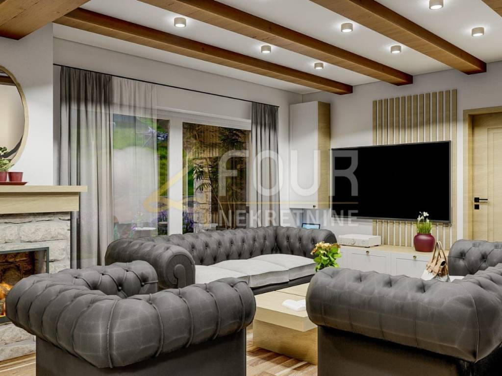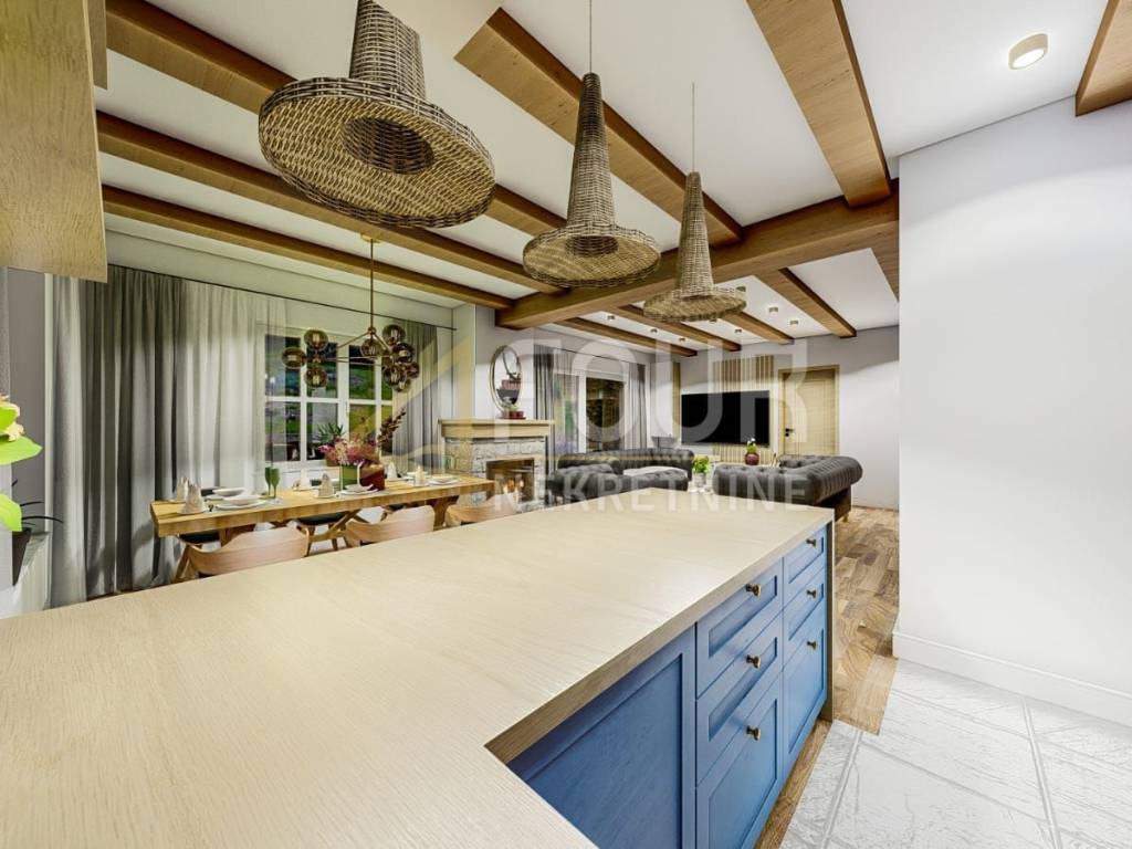 Built on a plot of 547 m2, it is surrounded by a spacious garden of 400 m2, which includes a swimming pool, garden, outdoor grill, summer kitchen and outdoor shower, which provides an ideal space for enjoying the outdoors.