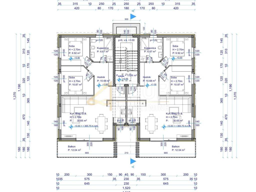 We offer an apartment in a quality new building with a total of 4 apartments. It consists of two bedrooms, a living room, a kitchen with a dining room, a bathroom, a hallway and a balcony with a view of Učka and Kastav. This apartment has a garage parking space and a storage room, which makes a total area of 90m2. The expected completion of the works is in early 2027.