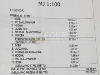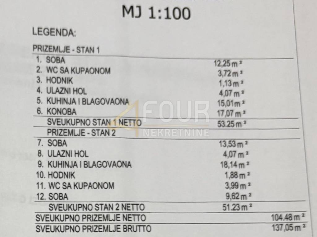 A stand-alone ground floor house with two apartments and a large garden is for sale in the strict center of Viškovo. The property is located in an extremely busy and sought-after location, making it very attractive for both living and for commercial or investment purposes. It is situated on a plot of approximately 583 m2, with a garden of about 478 m2, and due to the high density of the plot, it offers great potential for future expansion or new commercial-residential construction. It consists of two completely separate apartments, each with its own entrance. One apartment has one bedroom, a living room with a kitchen, a bathroom, an entrance loggia, and a cellar, while the other apartment has two bedrooms, a living room with a kitchen, a bathroom, and an entrance loggia. The total living area is approximately 105 m2. The property requires renovation, although the apartments are habitable. A new polystyrene thermal facade has been installed on the building, which needs to be completed with a final layer and paint. The house has air conditioning and a wood stove. In the garden, there is a vegetable garden, 5 parking spaces, and additional auxiliary space, and the location on the main road further increases the value of the property. Dear clients, agency commission is charged in accordance with the General Terms and Conditions.
