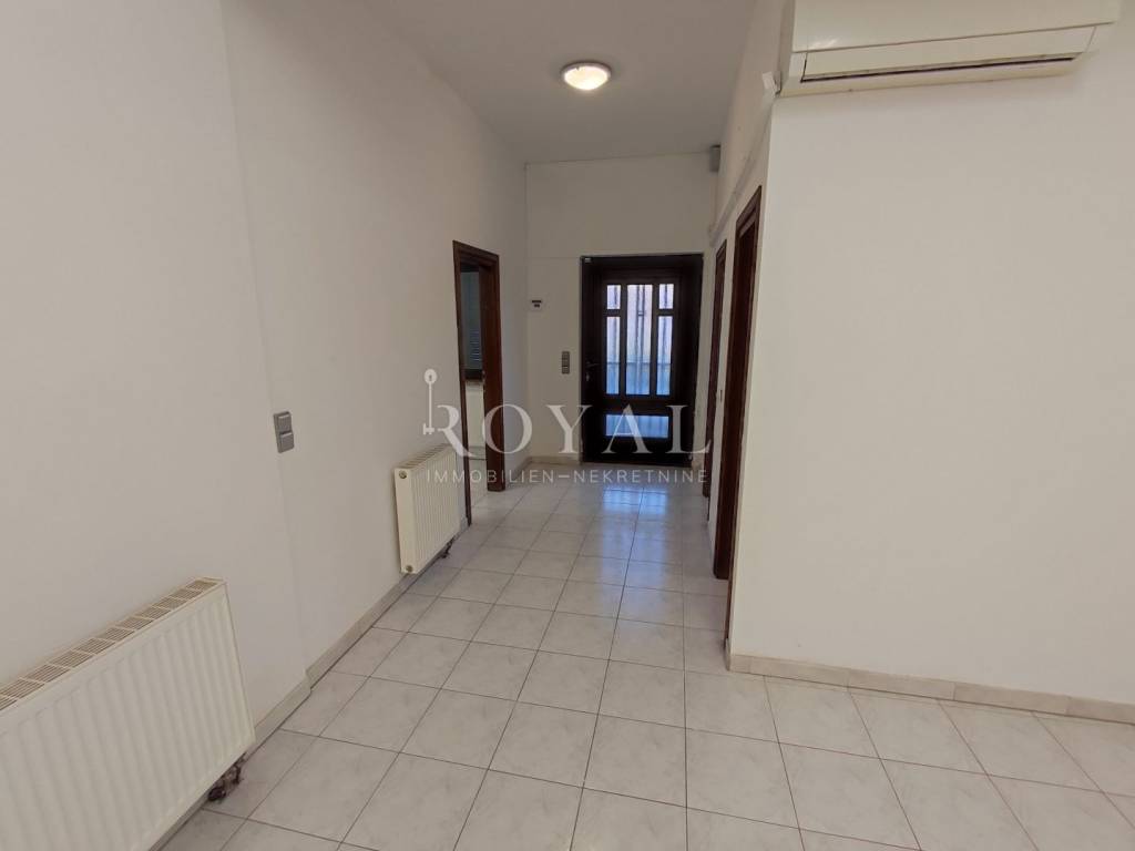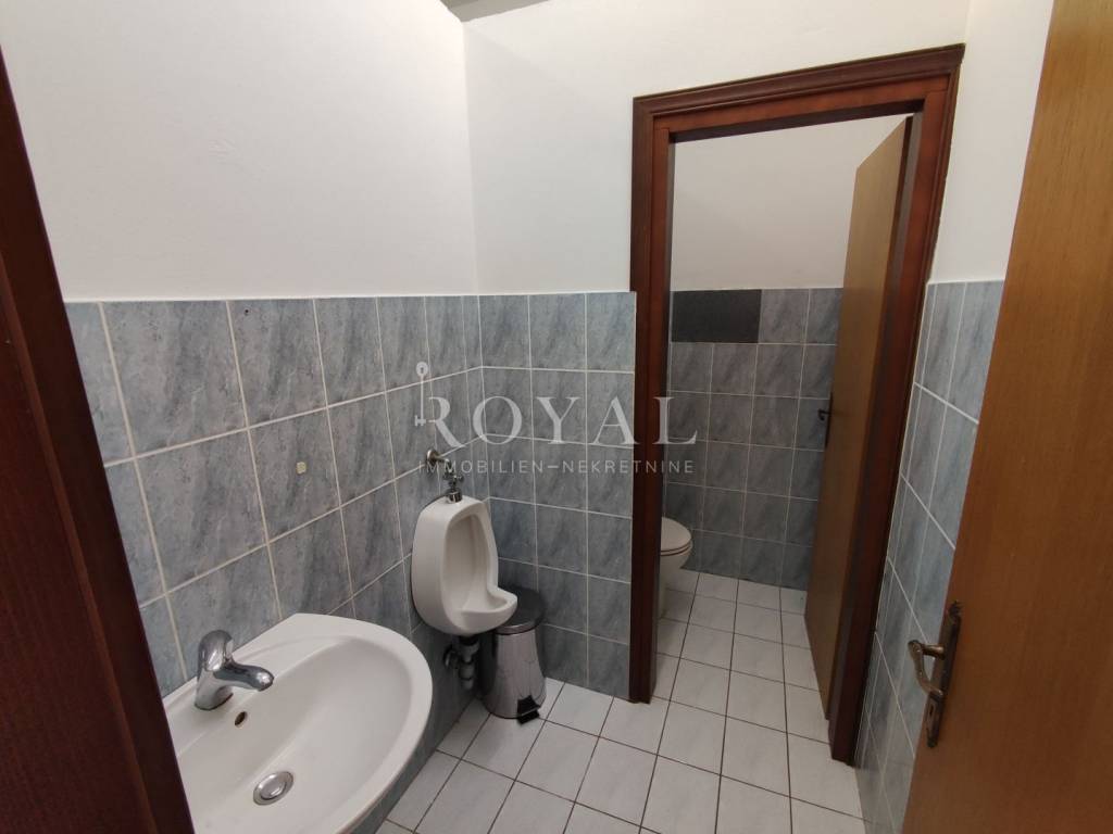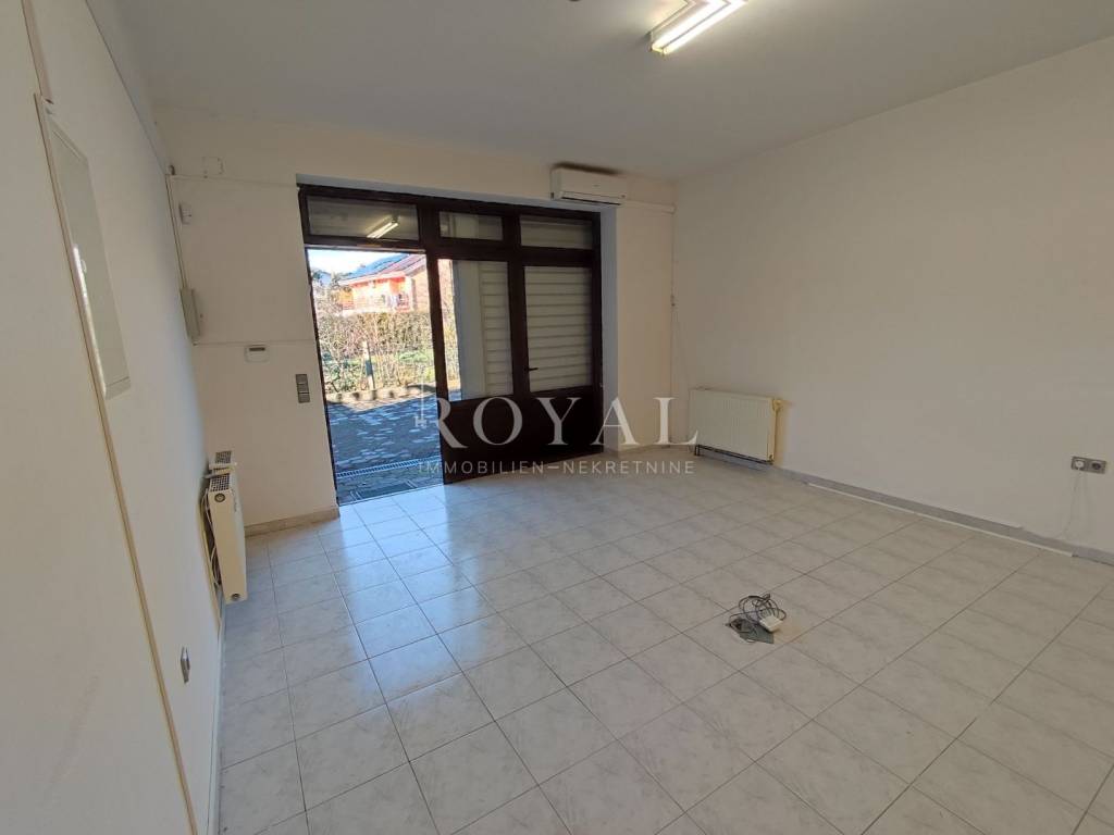 Iznajmljuje se poslovni prostor koji se sastoji od jedne velike prostorije koja je podijeljena pregradnim zidom. U poslovnom prostoru se nalazi još jedna kancelarija. Prostoru pripadaju 2 wc-a. Unutar okućnice ima 10-tak parkirnih mjesta. U prostoru su tri klime, sve je uredno i čisto. Struja je odvojena, a voda se ne plaća.
