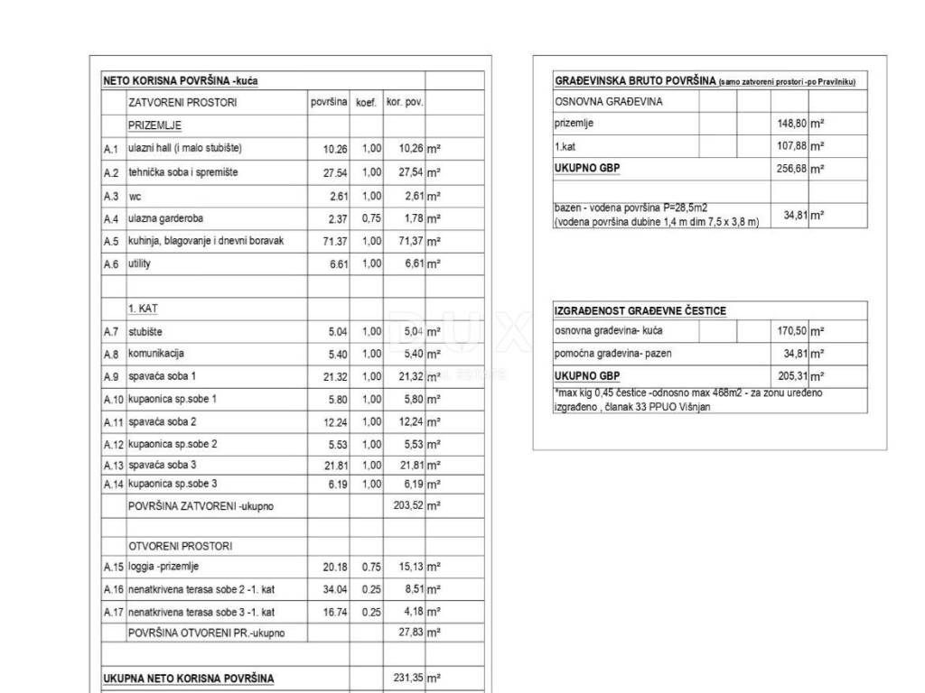 Prema važećoj građevinskoj dozvoli, planirana je izgradnja elegantne i suvremene mediteranske vile:
