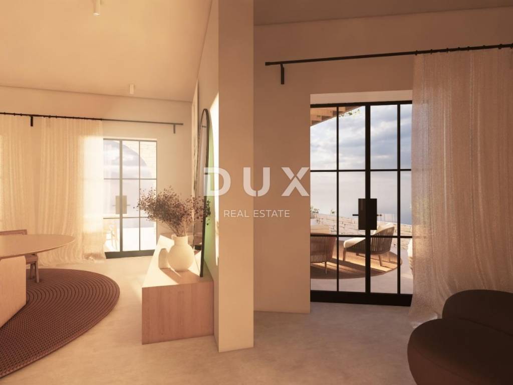 Cijeli dnevni prostor obiluje prirodnim svjetlom zahvaljujući velikim staklenim stijenama, koje nude neometan panoramski pogled na more te direktan izlaz na dvije natkrivene terase :