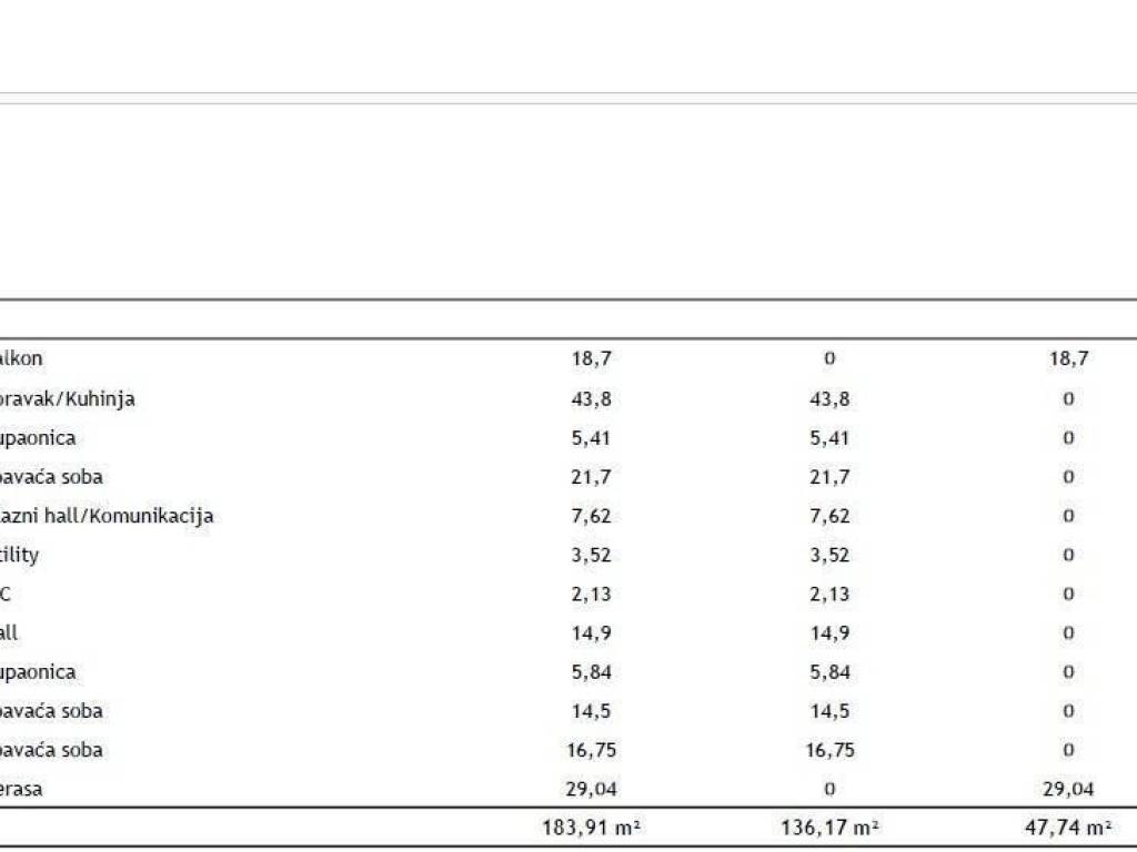 An apartment for sale in a new building in a TOP location, 270 m from the sea.Completion of works - 07.2026.Apartment E - 1 floor + attic.Indoor living space: 136.17 m²Outdoor space (two terraces): 47.74 m²Consists of:Living room with kitchen3 bedrooms2 bathrooms + WCHallEntrance hall/CommunicationUtility areaTerraceBaconAdditional features of the property:Air-conditionedUnderfloor heating on city gasFloors: ceramic and parquetSecurity doorsKnauf interior wallsSchüco aluminum joinery with Roltek electric shutters and netsVideo intercomFacade insulation: 10 cm rock woolGlass railings on balconiesGarage space for two vehiclesKone elevator from garage to first floorFor additional information, floor plans or to arrange a viewing, please contact us:Azra Valjevac+ 385 91 611 5706+385 98 420 885azra@almadominvest.com
