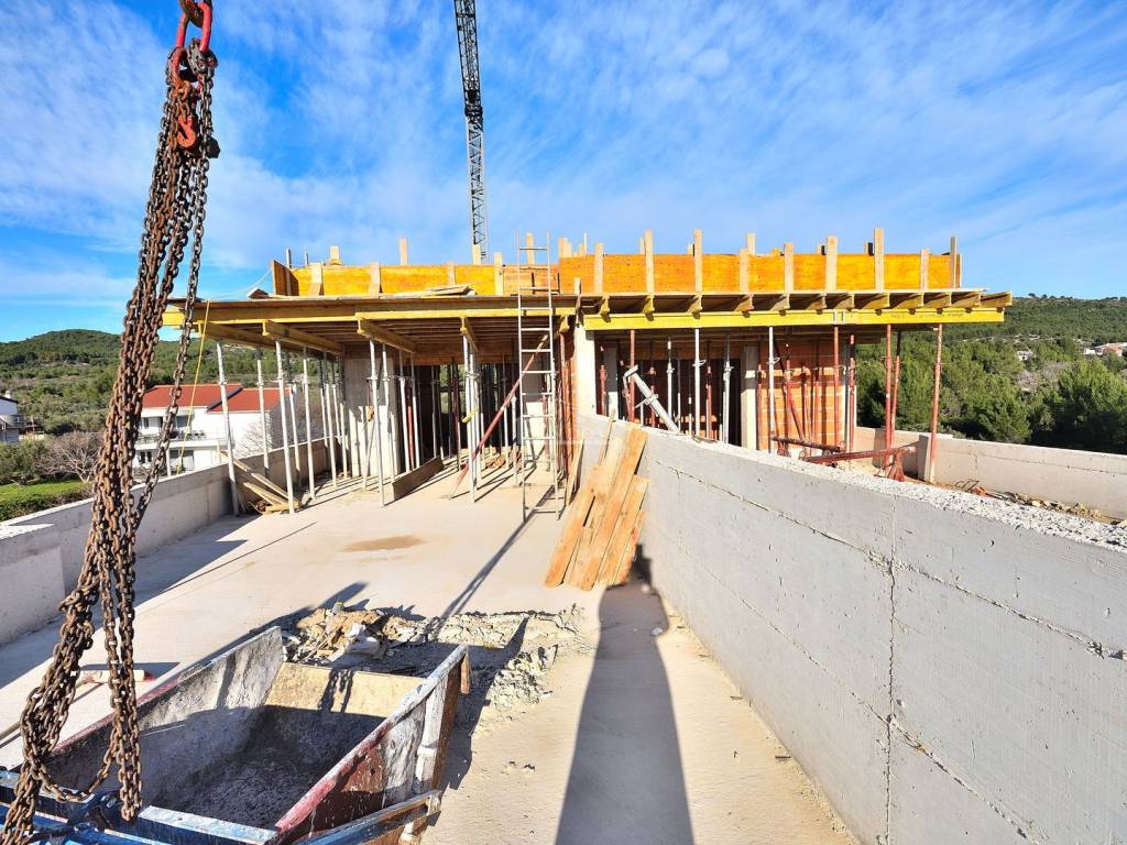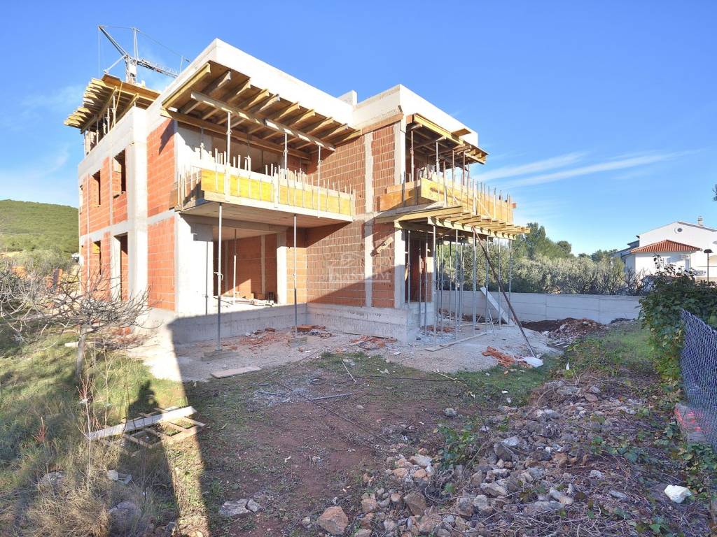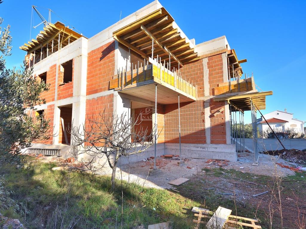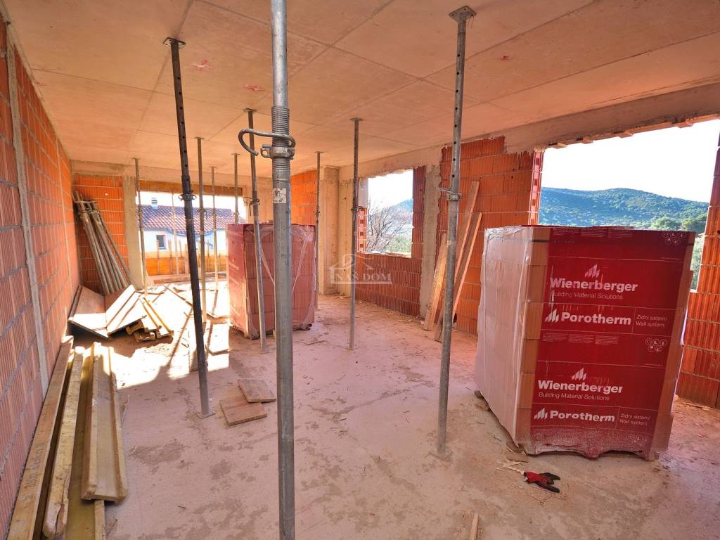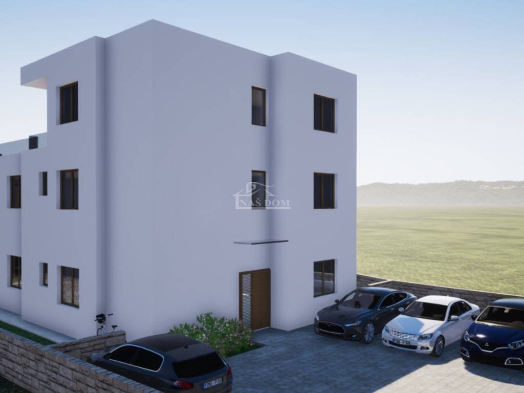 TRIBUNJ - SOVLJE, a small building under construction with 4 residential units, only 400 m from the beach and the center, a two-story apartment with a rooftop terrace is for sale, labeled APARTMENT S3 - two-story apartment with a total usable area of 108.13 m2 consisting of a floor comprising: hallway, kitchen with dining area and living room, terrace of 9.44 m2 with sea view, two bedrooms, bathroom, and a rooftop terrace of 35.64 m2 which consists of a summer kitchen of 18.56 m2, covered terrace of 11.14 m2, and uncovered terrace of 57.18 m2 with panoramic sea views, plus 1 parking space in front of the building.