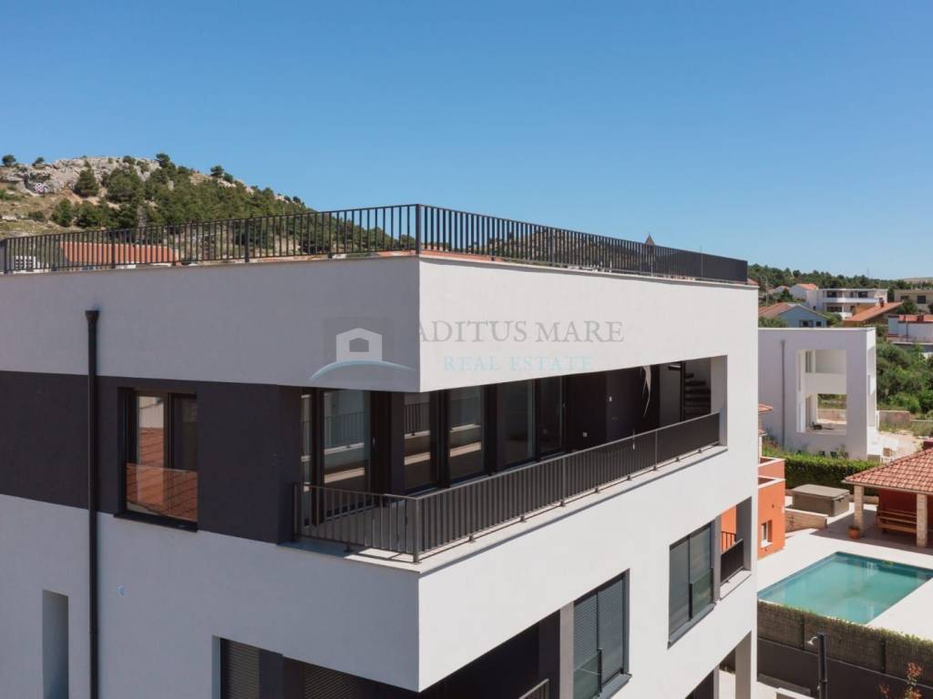 Ovaj penthouse nalazi se u novoizgrađenom stambenom objektu koji broji ukupno 5 apartmana, smještenom na atraktivnoj lokaciji 10 km od Šibenika.