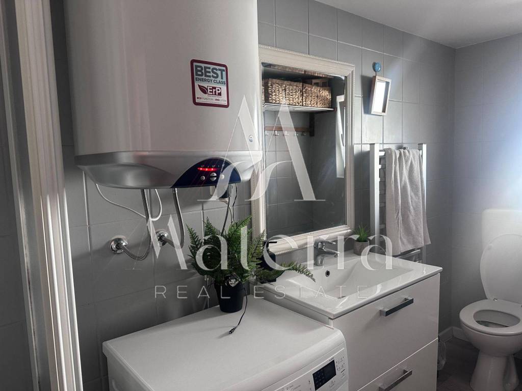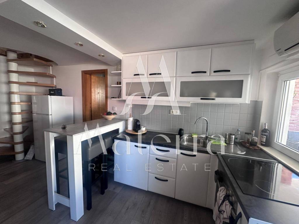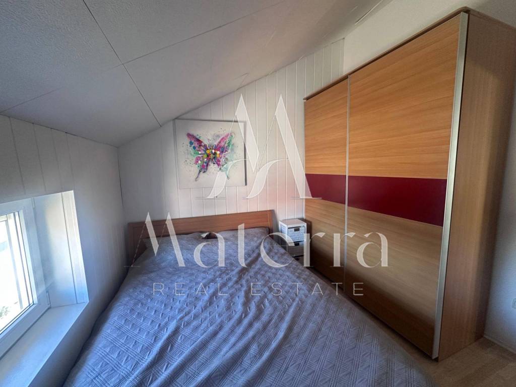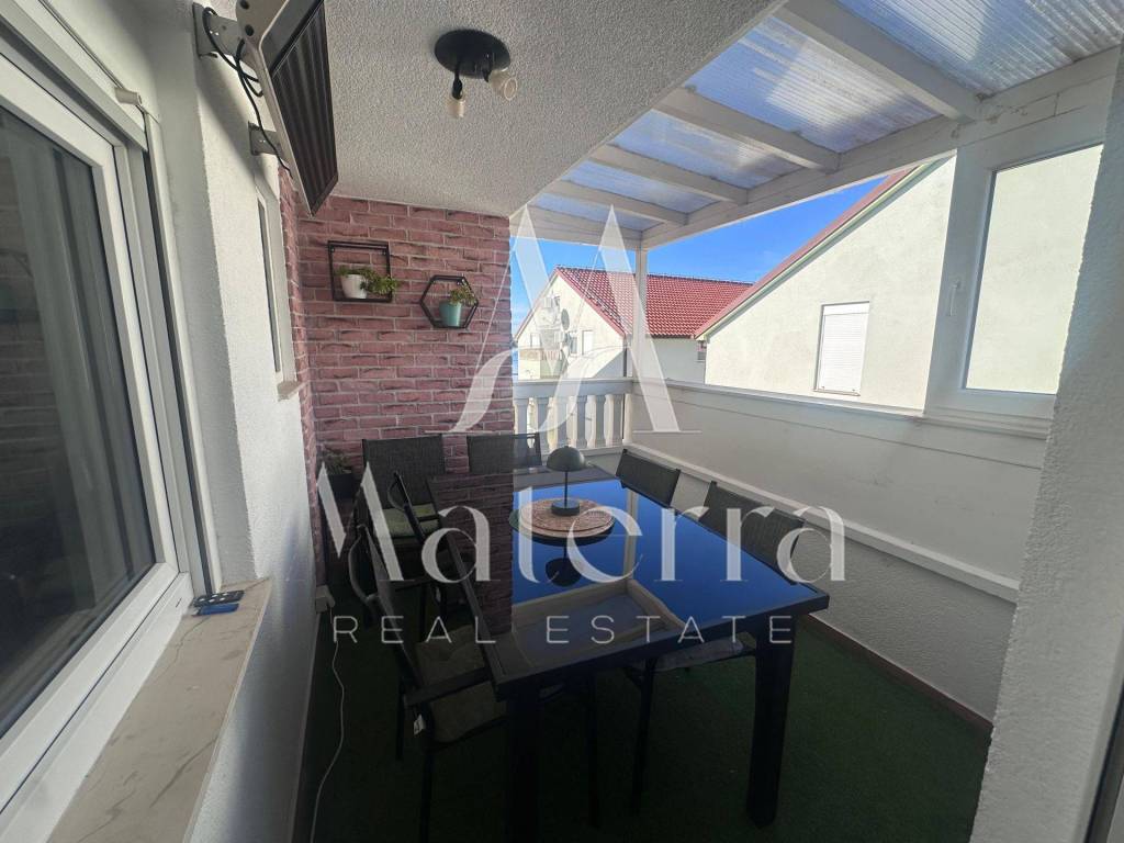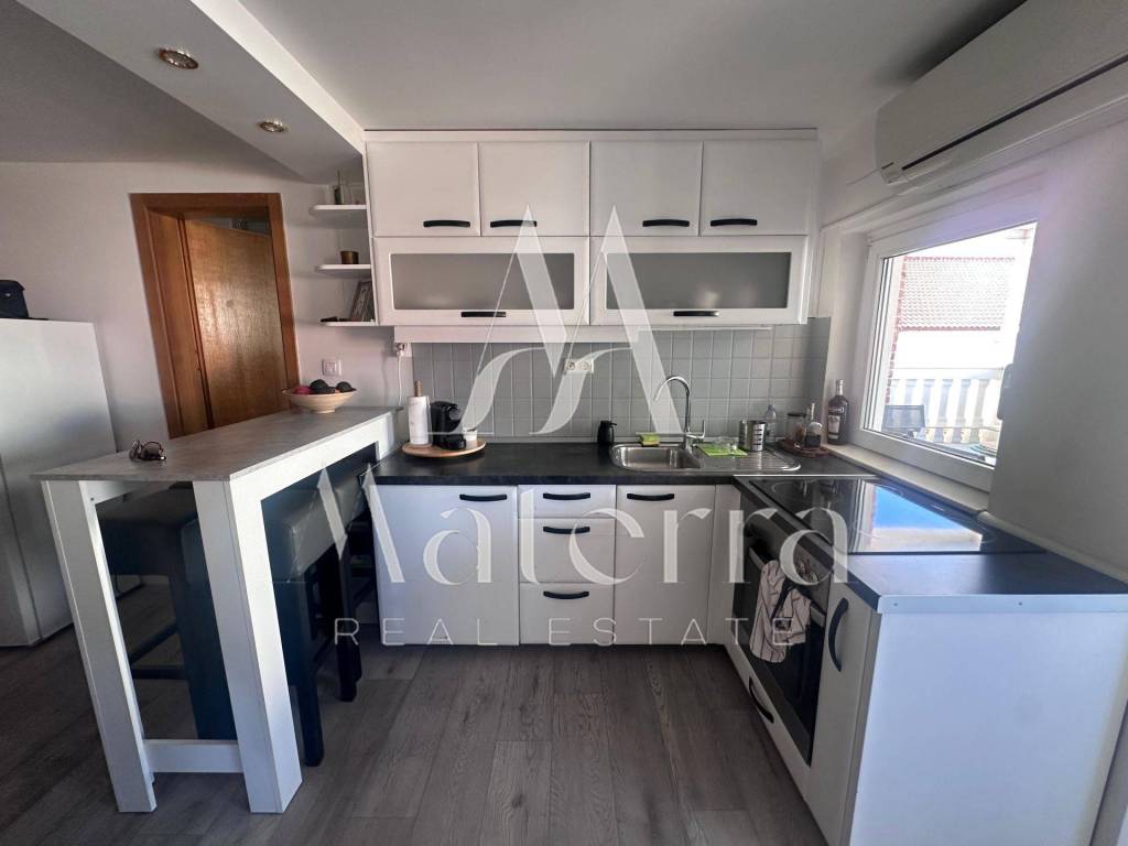 For sale is an attractive, fully renovated and modernly furnished two-bedroom apartment located in the very first row to the sea in Srima. The apartment is situated just 20 m from the sea and 950 m from the town center. This property, with a total area of 72.18 m², is located in the attic of a building that was completely renovated in 2022 and has a use permit and registered ownership, ensuring clear title and a smooth transfer of ownership.