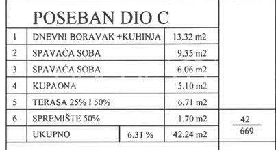A functional apartment is for sale, located on the ground floor of a residential building in Funtana. The floor plan is exceptionally well-utilized, offering a major advantage for this type of property: two bedrooms. Along with a living room connected to the kitchen and a larger master bedroom, there is a smaller room ideal as a children"s room (perfect for bunk beds) or a home office, as well as a bathroom. The apartment also includes a terrace for outdoor enjoyment and a storage unit. Although the property does not have a private parking space on the title, parking is available in the building"s shared courtyard.