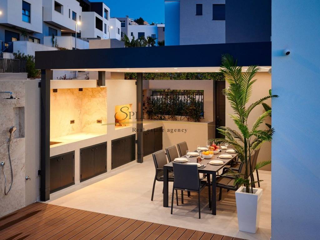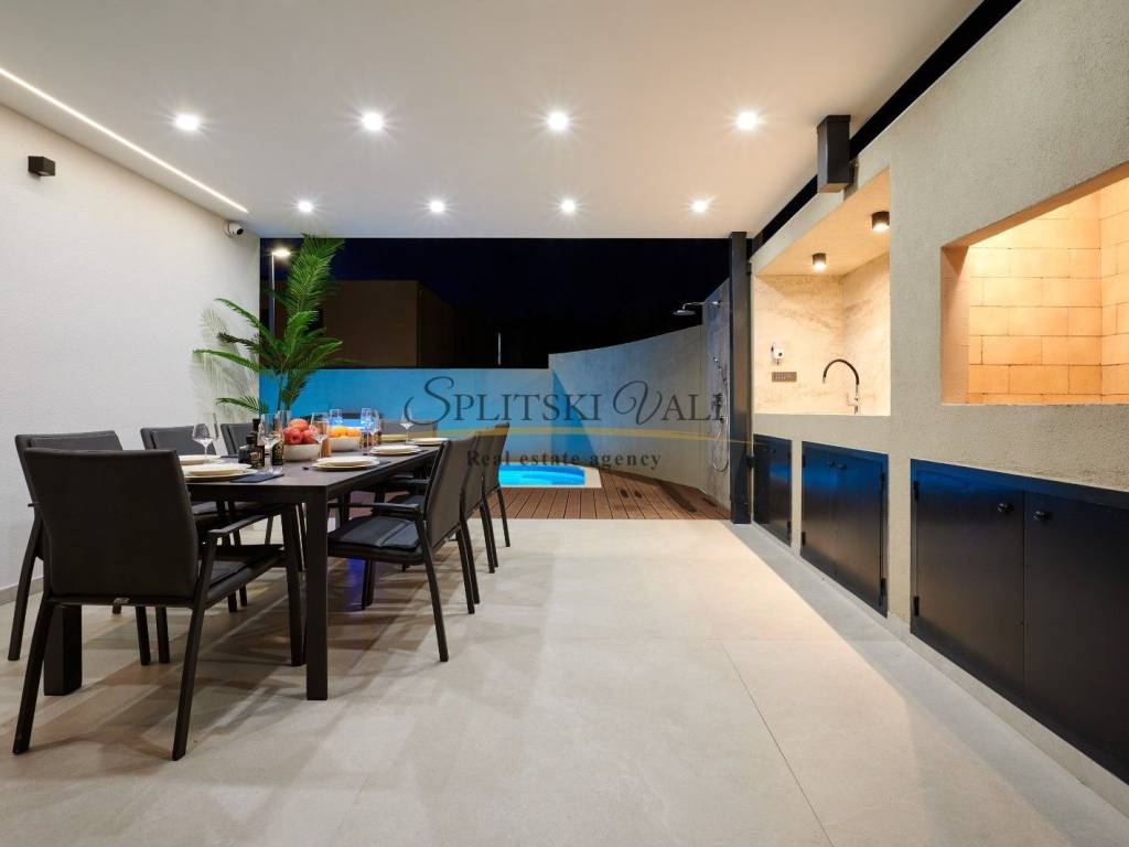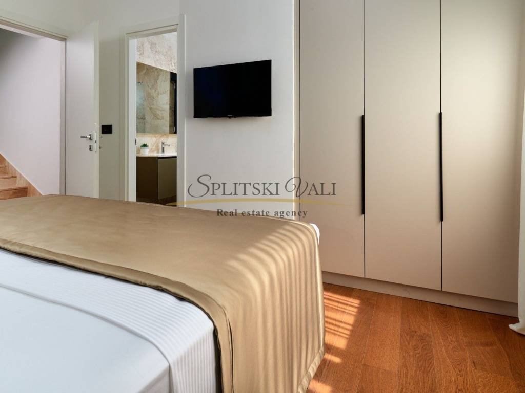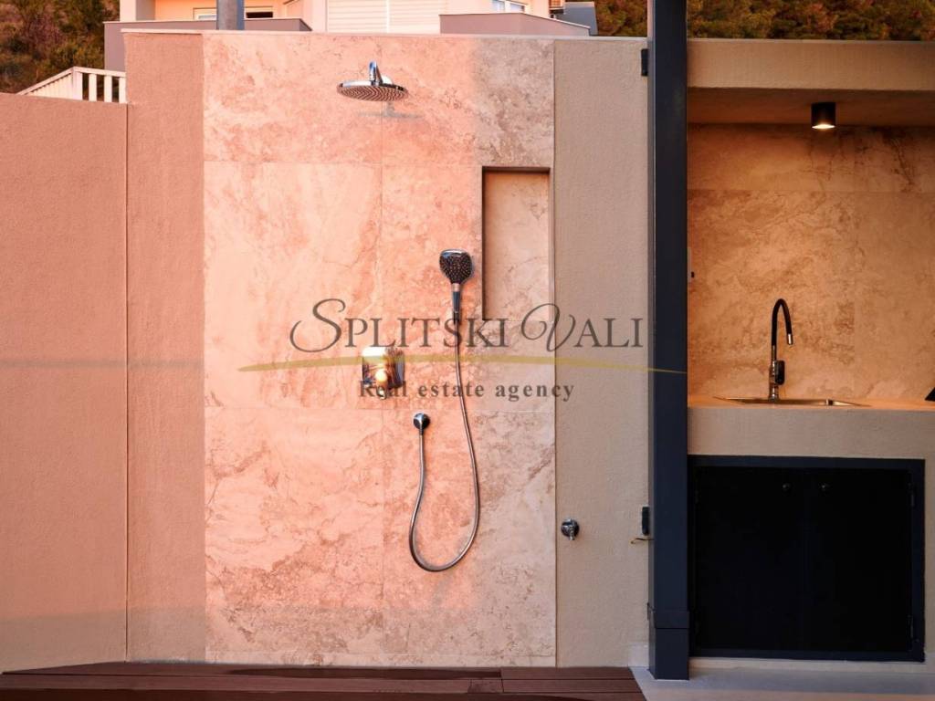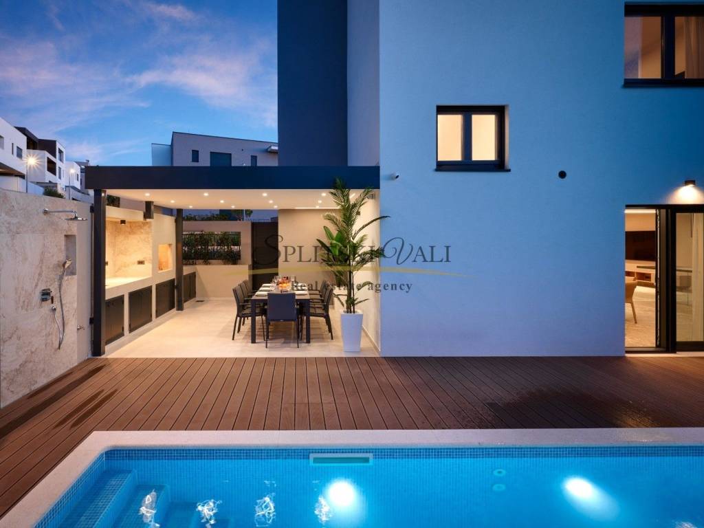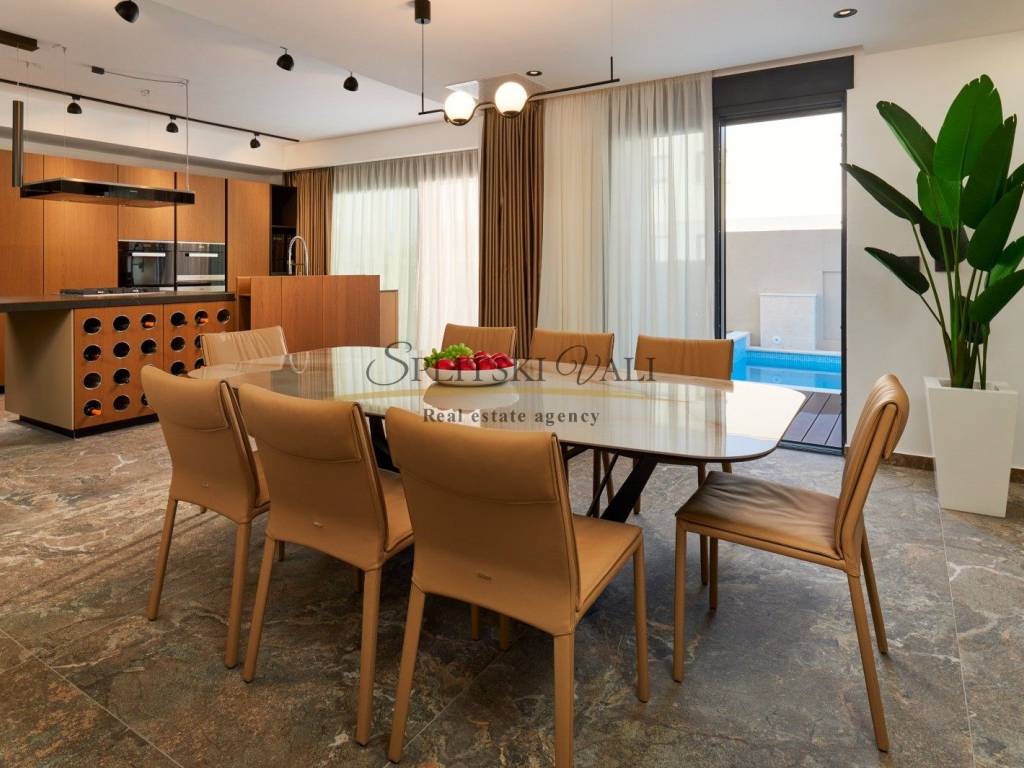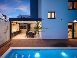Posredujemo u prodaji prekrasne ville u Strožancu s panoramskim pogledom na more i otoke. Villa se prostire na 4 etaže s ukupno 4 spavaće sobe, 6 kupatila, prostrane terase s pogledom, dnevnim boravkom, kuhinjom, garažom za 3 vozila, predivnom okućnicom s bazenom. Ukupna unutrašnja površina iznosi 380m2, a površina same parcele iznosi 412m2. Sama nekretnina je idealna za investiciju ili za stanovanje. Nalazi se u mirnom okruženju, u naselju urbanih villa u samoj blizini također. Kupac plaća posredničku naknadu 3%+pdv. Za više informacija nazovite na 099 1600 416 Dino ili 091 721 6115 Ante. Razgled nekretnine moguć je isključivo uz prethodno potpisan posrednički ugovor, sukladno Zakonu o prometu nekretninama.