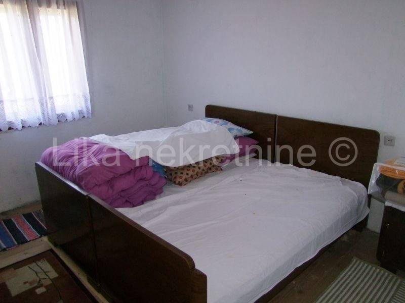 GORNJE VRHOVINE ( Vrhovine) - samostojeća obiteljska kuća 9x9,6m, visoka prizemnica s dvorišnim zgradama, voćnjakom (šljive, jabuke, orasi, trešnje) ispred i iza kuće. Kuća ima dva prilaza. Kuća je u gornjem dijelu useljiva i namještena te se sastoji od hodnika, kuhinje, dnevnog boravka, kupaonice s wc-om, dvije spavaće sobe. Prizemlje kuće ima zaseban ulaz, prizemlje je neizređeno, nalazi se u suterenu od jedne prostorije ispod cijele kuće ( ostava zimnice). Izmjenjena pvc stolarija. U dvorištu je ljetna kuhinja 5,5x3,5m sa pušnicom za meso, a nasuprot dvorišta je gospodarski objekt - štala, dimenzija 7x10,5m u čijem se prizemlju nalazi velika garaža, a u drugoj polovici je staja za blago - smještaj stoke. Iznad garaže i staje nalazi se prostor za skladištenje sijena. Između kuće i ljetne kuhinje je šterna ( bunar za kišnicu). Kuća je useljiva, vlasništvo uredno, bez tereta, svi objekti ucrtani. Okućnica 2.942 m2 s mogućnosti otkupa susjednih čestica. Struja, gradski vodovod, septička jama...