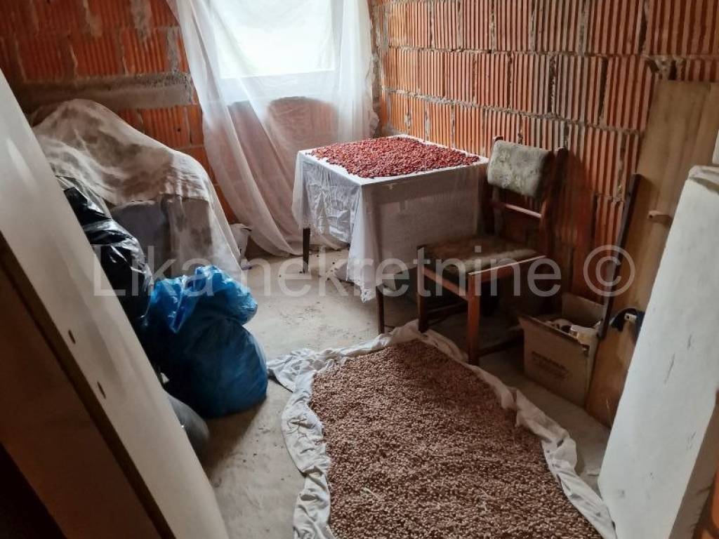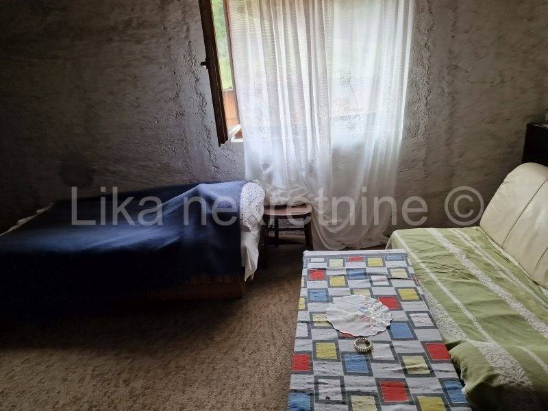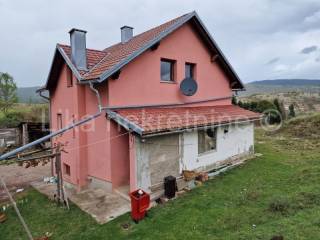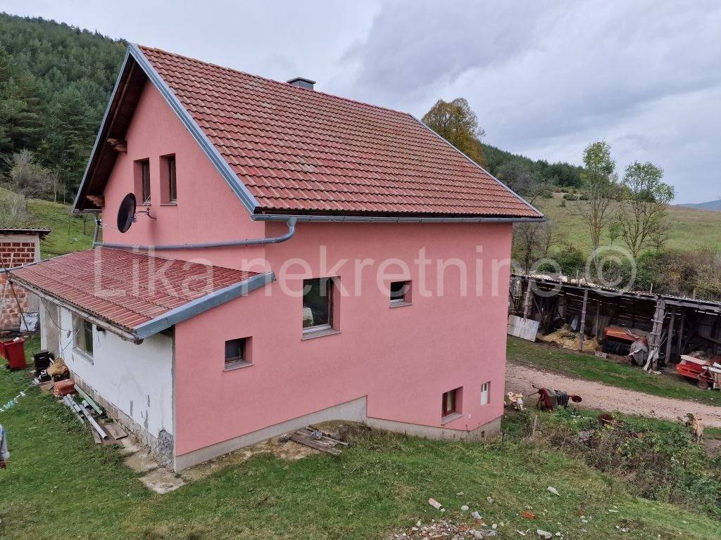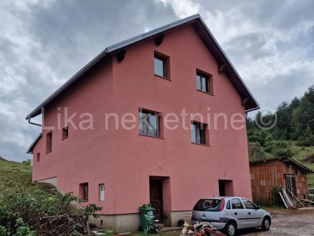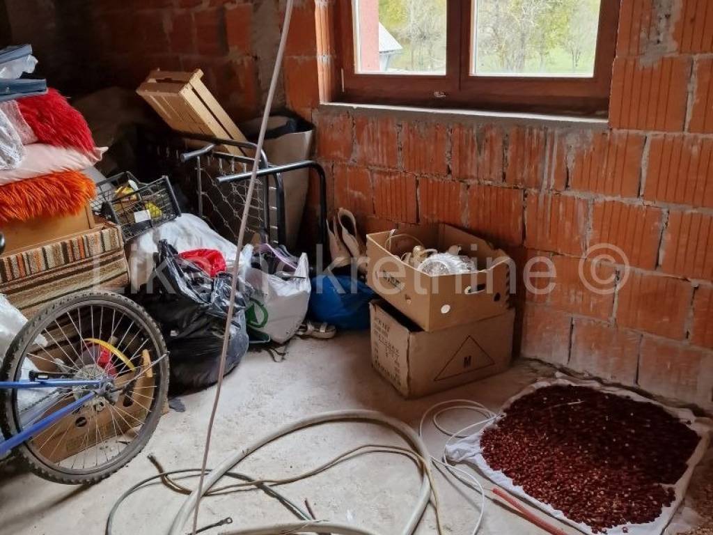 GORNJE VRHOVINE - obiteljska kuća 180 m2, sastoji se od suterena u kojem su dvije prostorije, ljetna kuhinja i konoba ( ostava za zimnicu ), na katu je trosobni stan useljiv za stanovanje, a na katu takođet trosobni stan u roh-bau izvedbi ( potrebno uređenje), kuća ima sve priključke, struja, voda, septička jama, stiropol fasada. Grijanje na drva. U dvorištu je velika pomoćna zgrada drvena za poljoprivredne strojeve. Uredno vlasništvo 1/1, bez tereta.