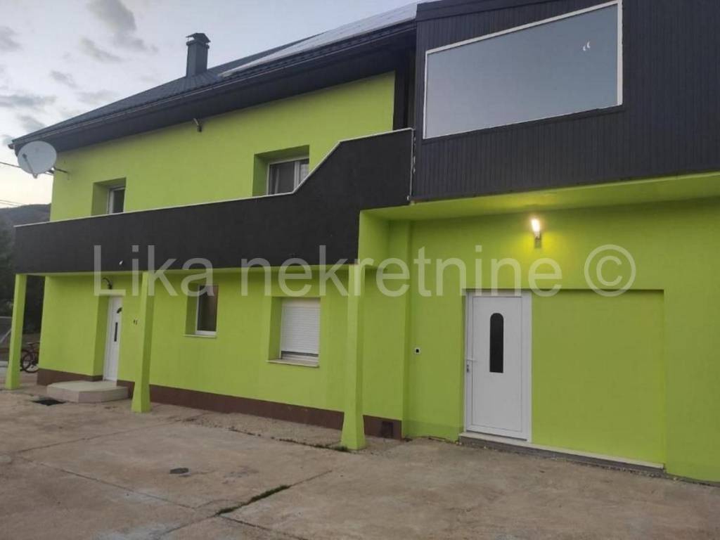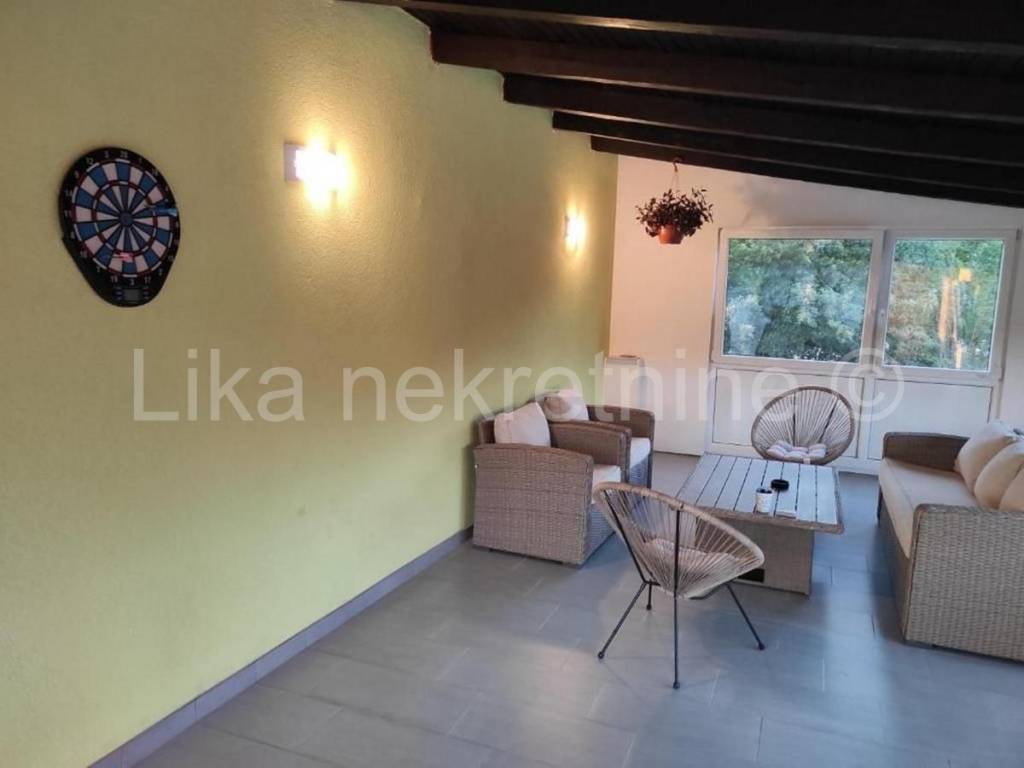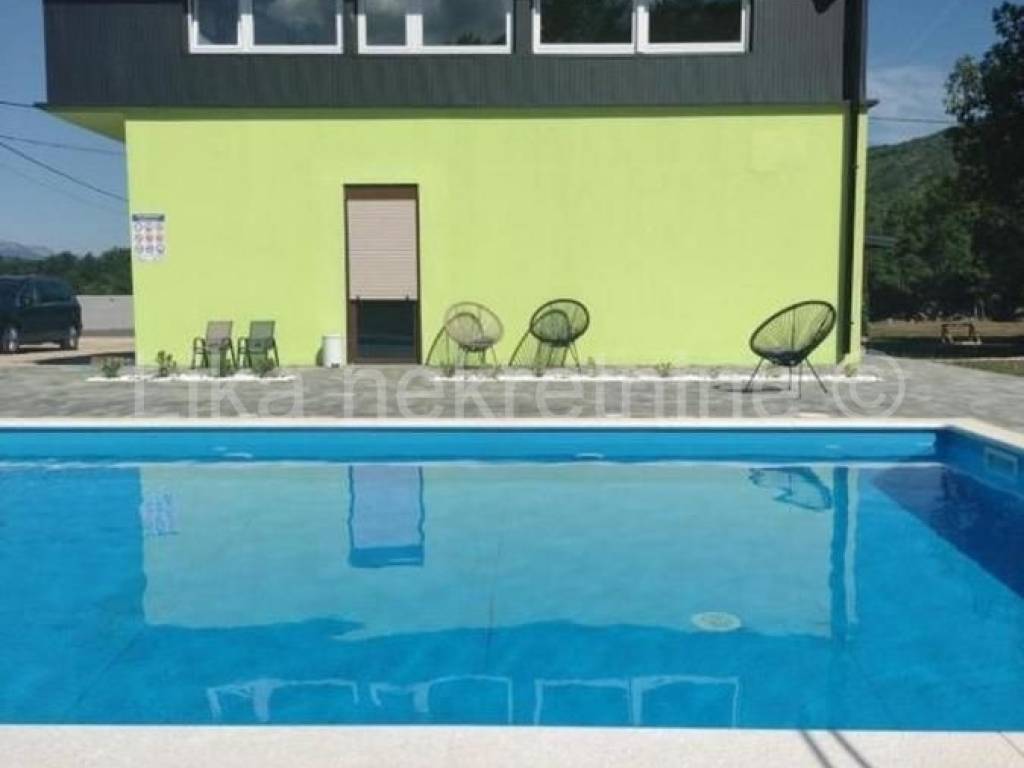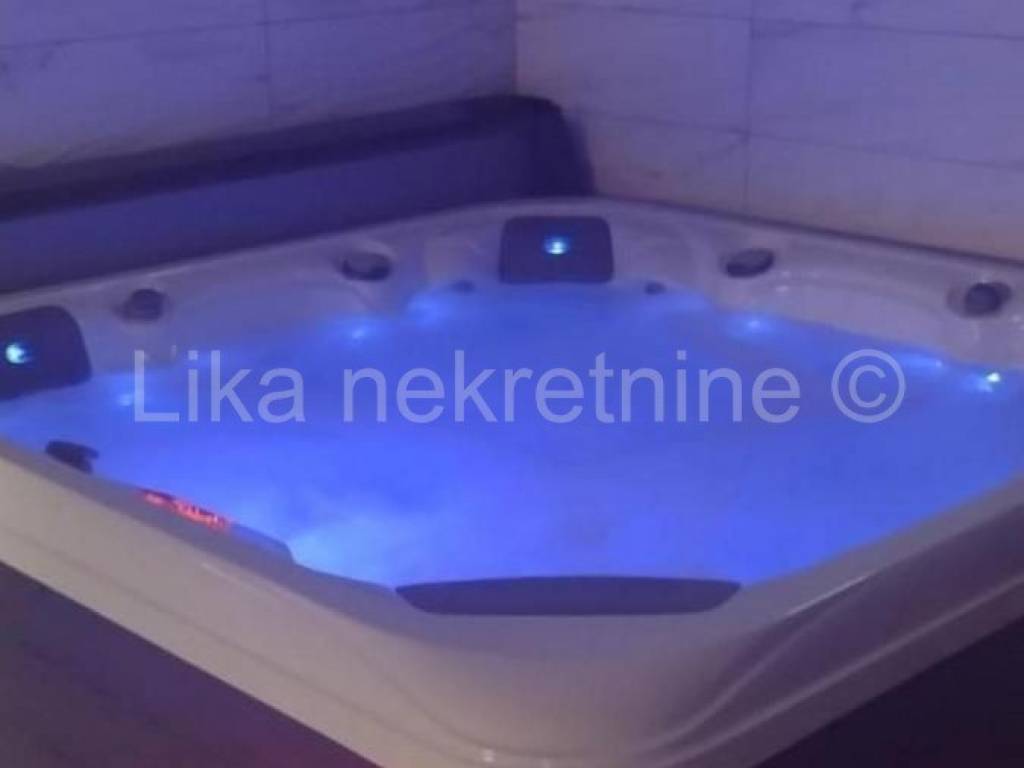 LOVINAC- Štikada - prodaje se kuća sa apartmanima za iznajmljivanje-poslovni projekt. Radi se o uhodanom objektu sa osiguranim velikim godišnjim prihodima. Objekt se sastoji od kuće sa tri velika apartmana svaki sa dnevnim boravom i dvije odnosno tri sobe ukupno sedam soba (16 ležajeva) i četiri kupaone. Iz svakog apartmana se izlazi na privatnu terasu površine 50m2. Smještajne jedinice su kompletno opremljene namještajem, kuhinja sa svim potrebnim uređajima i opremom, relax zone koja uključuje velnes spa zonu (50m2) opremljenom hidromasažnom kadom i saunom. Uz objekt se nalazi i grijani bazen (10,5X6m) sa terasama za sunčanje, posebna BBQ zona, dječje igralište, te parking za 12 vozila. Cijeli posjed (4000m2) je ograđen i vrhunski uređen. Grijanje je na toplinsku pumpu i pelete a ugrađena je i solarna centrala za proizvodnu vlastite struje. U blizini su prirodne ljepote: Cerovečke pećine, Jezero, a more je udaljeno pola sata vožnje autom. Mirna oaza za opuštanje-dobra poslovna prilika. Cijena nije fiksna.
