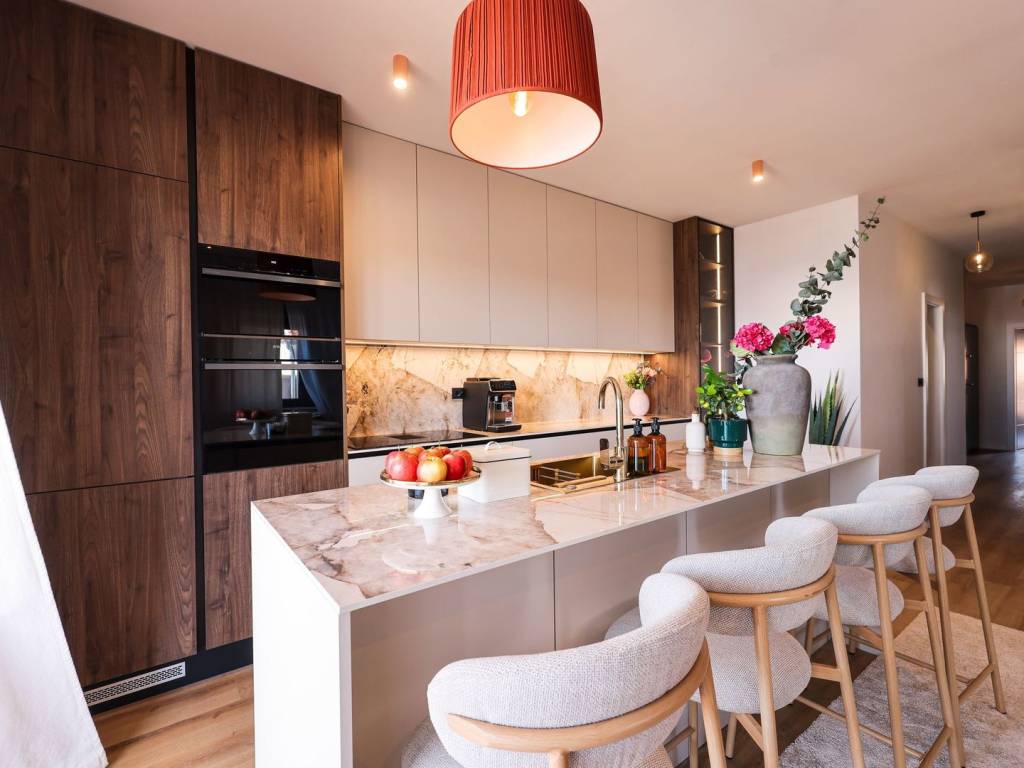 A modern penthouse in a new building is for sale in Višnjik, with a total living area of 110 m2 and an additional rooftop terrace of 108 m2. The apartment is located on the top floor of a building with an elevator and comes fully equipped and quality furnished.