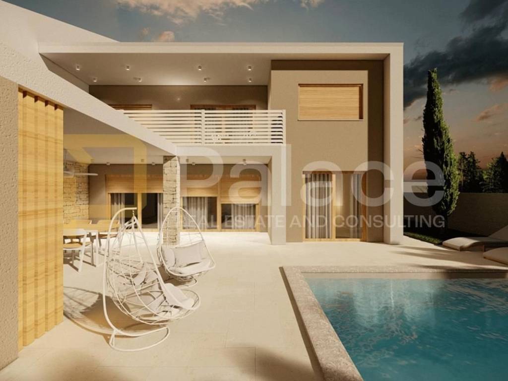 In a quiet and attractive area near Vodnjan, just a few minutes from Pula, this modern semi-detached villa with a pool is located on a plot of 600 m², perfect for family living or as a top investment for tourist rental.