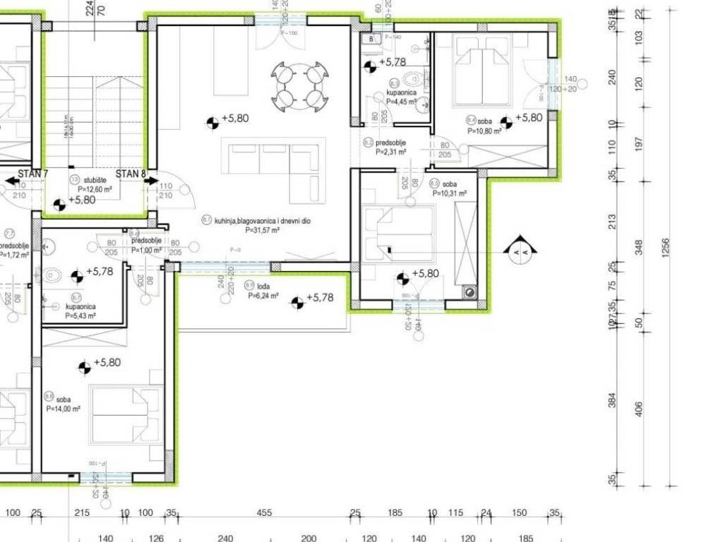 Apartment for sale in Zadar Višnjik. Modern three-bedroom apartment under construction, with a total calculated area of 117 m. It consists of an open-space living room with kitchen and dining area, 3 bedrooms, 2 bathrooms, and a loggia. A special feature is the private rooftop terrace of 95 m. The apartment includes a storage room and 2 parking spaces. Excellent location close to all amenities of the city of Zadar.