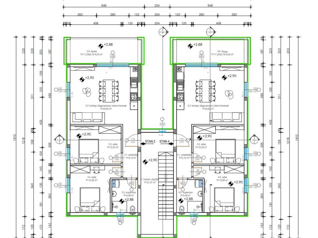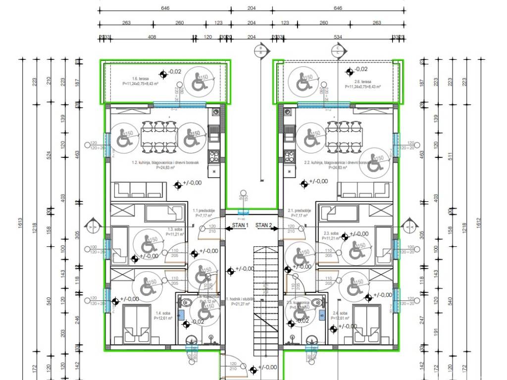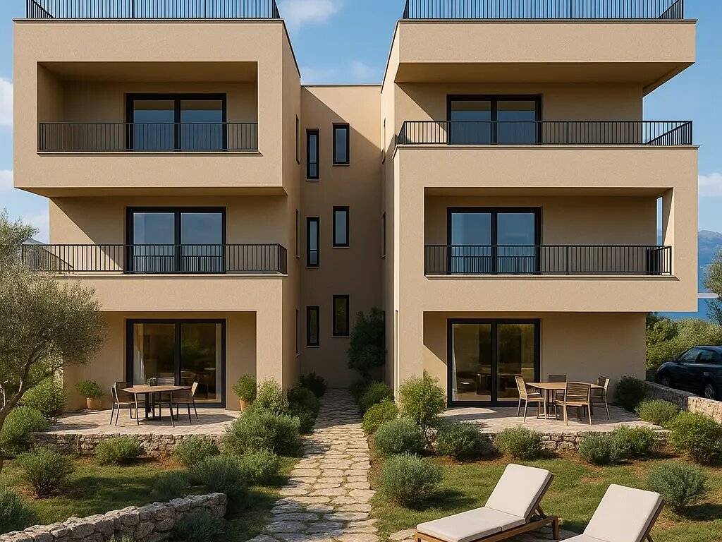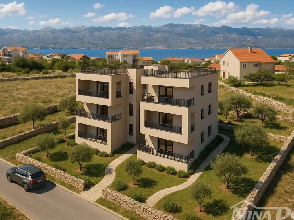 Apartmani u izgradnji, Zgrada se sastoji od ukupno 6 stambenih jedinica, smještena u mirnom dijelu u neposrednoj blizini mora i plaže. Zgrada je udaljena svega 240 metara do mora i plaže. Prizemlje: u ponudi su dva identična apartmana od kojih svaki ima kuhinju s dnevnim boravkom i blagovaonicu, dvije spavaće sobe, kupaonicu i terasu. Propadak je parkirno mjesto. Prizemni apartmani su prilagođeni osobama s invaliditetom i invalickim kolicima. Cijena svakog aparmana u prizemlju iznosi 253 000 Kat: dva identiča apartmana dvosobna s pripadkom parkirnog mjesta.. Cijena svakog apartmana na katu iznosi 245 000 drugi kat: dva identična dvosobna apartmana kojima kao pripadak pripada i krovna terasa od 70 m2. Pogled na more i Velebit iz apartmana kao i sa krovne terase je predivan. Cijena svakog apartmana s pripadkom parkirnog mjesta i krovne terase iznosi 280 000 .