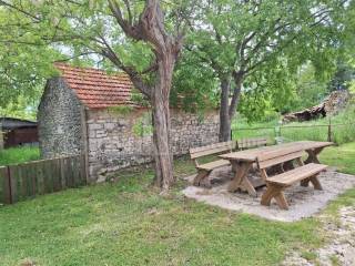 Prodaje se izuzetno atraktivno građevinsko zemljište sveukupne površine 2432 m2 na kom su smještene 3 kamene kućice od kojih jedna ima površinu 34m2, druga 28m2 i treća 22m2.