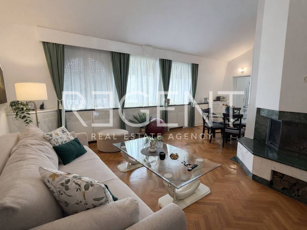 In an excellent location on Petrova Street, in the immediate vicinity of Kvaternik Square, a luxuriously furnished three-room apartment with an area of 120 m² is for rent. The apartment is located on the third floor, which is also the top floor, of a residential building and is available for immediate occupancy. The rental price of the apartment with a garage is €1,200.00 per month. The apartment is oriented on several sides, extremely bright and spread over two floors. On the first floor there is a spacious living room connected to the kitchen and dining room in an open concept, as well as a bathroom with a bathtub and a toilet. The second floor includes a bedroom, an additional bathroom with a shower and a toilet, and a sauna, which provides an extra level of comfort and relaxation. The interior is carefully and luxuriously decorated, with unique furniture and works of art, with special attention being paid to details. The apartment is fully furnished and equipped with all necessary household appliances, including air conditioning, security doors and high-quality equipment. A garage parking space in a public garage at Kvaternik Square is also rented with the apartment, which is included in the rental price. The garage is located just a few minutes' walk from the residential building. The location is one of the key advantages of this property. The apartment is located in a traffic-well-connected zone, with quick access to public transport. In the immediate vicinity there are parks, shops, schools, hospitals and all other facilities necessary for a quality daily life. Utilities are approximately 100 euros. A deposit in the amount of one month's rent is required. For additional information and to arrange a viewing, we are at your disposal.