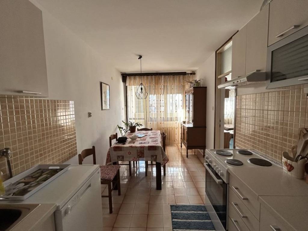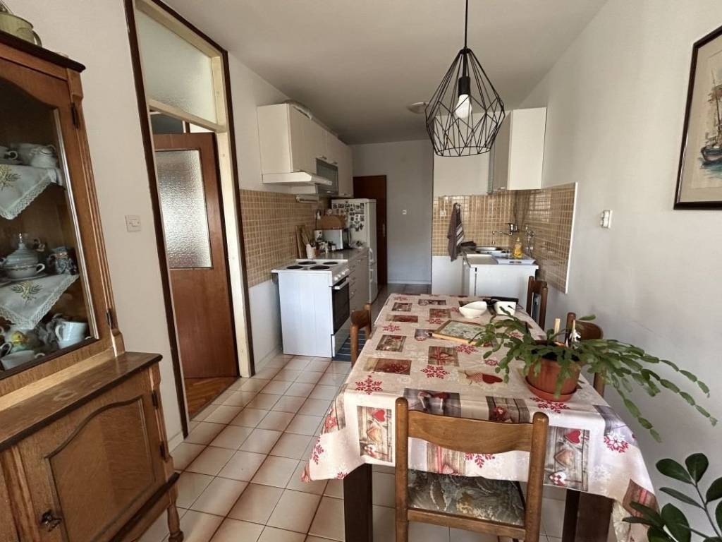 A spacious 90 m² apartment is for sale in Blatine, located on the second floor of a residential building. The apartment is well-maintained and in good condition, allowing for immediate move-in. It consists of three bedrooms, a large bathroom, a kitchen and dining area, and a spacious living room, providing a comfortable space for family life and socializing. The apartment features three loggias, allowing plenty of natural light and opportunities to enjoy outdoor space. A storage room is also included. The apartment has a west-facing orientation, offering natural light in the afternoon, and is situated in a quiet and orderly neighborhood. Nearby amenities include bus stops, shops, schools, and kindergartens, and public parking is also available.