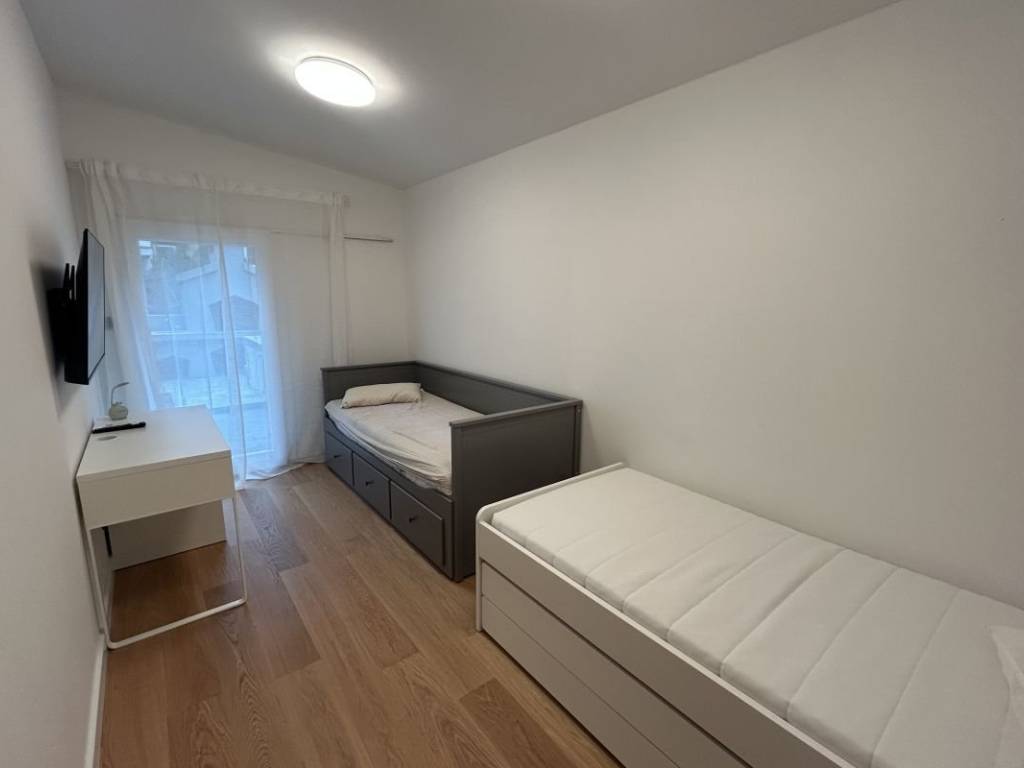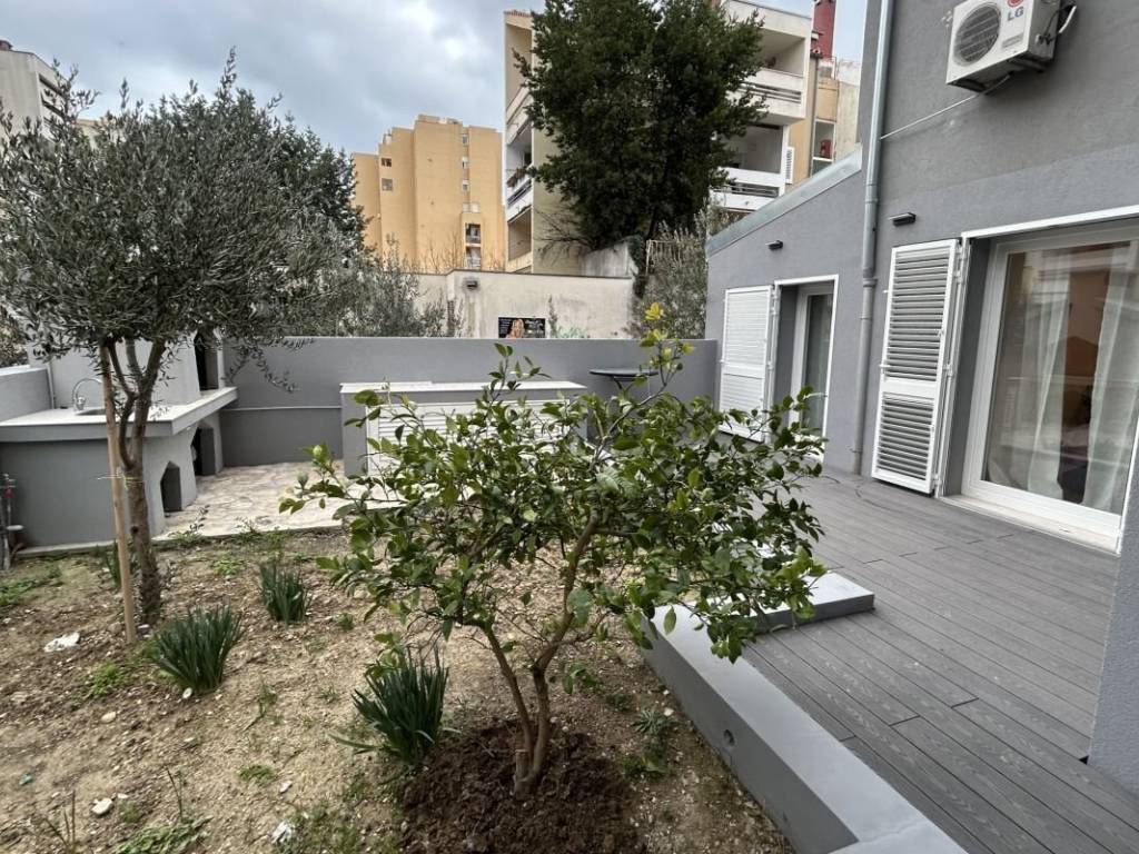 A modern, fully renovated apartment is available for rent in a quiet part of Mertojak. The property features a functional layout and a pleasant living atmosphere, making it ideal for a family or a couple seeking a high-quality living space. The apartment consists of two bedrooms, a spacious walk-in wardrobe, two modern bathrooms, and an open-plan kitchen, dining area, and living room that create a sense of openness.   A special highlight of this property is the large private garden with a fireplace, perfect for relaxing, socializing, and enjoying outdoor living throughout the year. The apartment is furnished with high-quality furniture and appliances and is ready for immediate move-in.