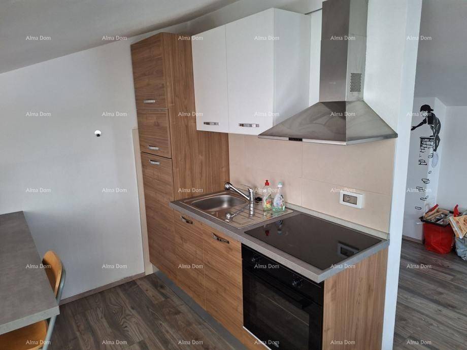 In Taru – Vabriga, an attractive penthouse apartment is for sale, oriented towards the southwest.The apartment has a total area of 84 m², while the net usable area is 75.41 m².Apartment layout:- Kitchen with living room- Two bedrooms- BathroomThe property includes:- A garage with an area of 13.88 m² with access- A storage room with an area of 8.97 m²The apartment features a chimney, allowing for the installation of a fireplace or solid fuel stove.The building was constructed in 2009, and the apartment was last renovated in 2017.This apartment represents an excellent opportunity for comfortable living, vacation, or investment, thanks to its peaceful location and functional layout.For more information, please contact:Azra +385 91 611 5706 +385 98 420 885 azra@almadominvest.com