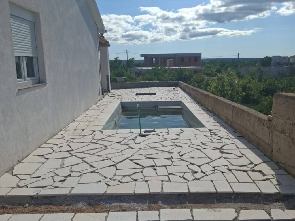 Prodaje se samostojeća kuća s bazenom u Maslenici, s popločenom prostranom terasom, izgrađena je na parceli od 405 m2.