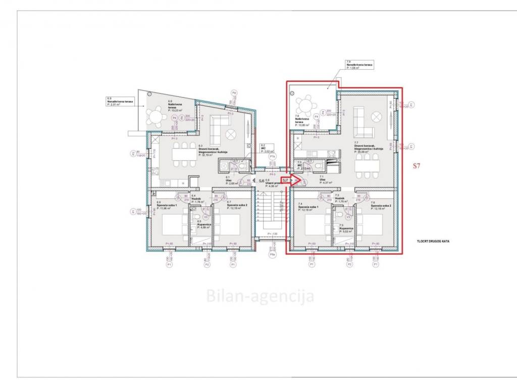 This new building is of very high quality, built with care and experience. Top quality materials were used. The apartment is equipped with underfloor heating, air conditioning inverter units, quality windows and doors with built-in insect protection and electric shutters. Quality ceramic tiles, and modern bathroom equipment.