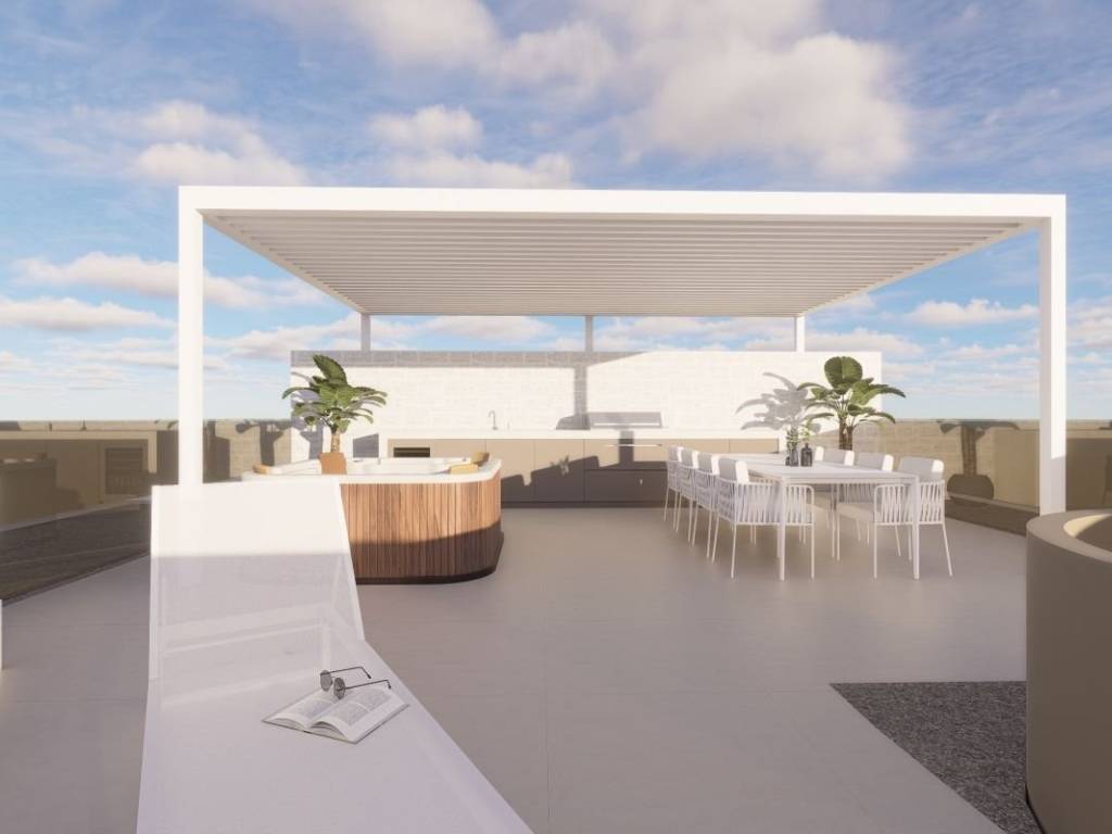 In an attractive location above Primošten, a modern urban villa with three apartments and a swimming pool is for sale. Thanks to its location, all apartments offer magnificent views of the sea and islands. The total living area of the house is just over 250m2 and it is located on a plot of 480m2. As part of the neat garden, there is a covered parking space for three cars. The apartments are separated from each other, with separate entrances connected by an external staircase. All three apartments have two bedrooms, two bathrooms and an open-concept living area. The first apartment, located on the ground floor, includes a living area of 80m2 and a 135m2 garden with a balcony and a sundeck. The apartment on the first floor is similarly designed. It includes 80m2 of living space and 27m2 of outdoor space in the form of a covered terrace. On the second floor there is a penthouse with a living area of 90m2 and private access to a roof terrace with an area of approximately 65m2. This modern house is a great investment property considering the proximity to all amenities but the location at the same time offers peace and privacy.
