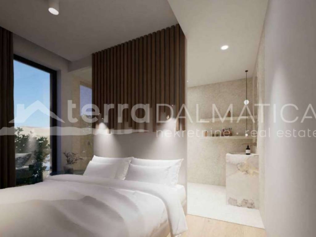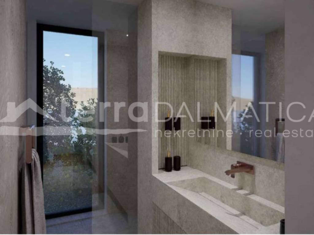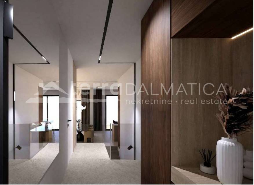 A luxury apartment under construction is for sale, located in the first row to the sea in beautiful Sukošan, close to Zadar, ideal for those who want to enjoy a superb Mediterranean lifestyle. This exclusive property offers the perfect combination of luxury, comfort and modern design. It is located on the ground floor of the building. It consists of an elegant entrance area that leads to a spacious living room connected to the kitchen and dining room, while three spacious bedrooms, each with its own private bathroom, ensure complete comfort and privacy. Additional value to the apartment is provided by the space in the basement, which includes a social area, a wellness oasis with a sauna and a gym, a laundry room, a toilet, and an engine room, creating a perfect place for relaxation and recreation. A special impression is left by the spacious terrace and lounge area, ideal for enjoying the warm Mediterranean evenings, while the pool, which consists of a covered and an uncovered part, provides a luxurious swimming experience. The apartment comes with two parking spaces and three gardens, one of which is paved. . Vrt ima 139 kvadrata, idealno za uživanje i druženje slušajući šum valova. Stan je opremljen vrhunskom, modernom i kvalitetnom opremom, a svaki detalj prostora pažljivo je dizajniran s ciljem pružanja maksimalne udobnosti, funkcionalnosti i elegancije. Osim luksuznih sadržaja, atraktivne lokacije i vrhunske opreme, ovaj stan nudi neprocjenjivo iskustvo života uz more – buđenje uz šum valova, opuštanje uz pogled na tirkiznu obalu i nezaboravne zalaske sunca. Sukošan, poznat po marini Dalmacija, prekrasnim plažama i kristalno čistom moru, nudi opuštenu mediteransku atmosferu i sve pogodnosti suvremenog života, dok Zadar, udaljen svega nekoliko minuta vožnje, oduševljava bogatom poviješću, kulturnim znamenitostima poput Morskih orgulja i Pozdrava Suncu te vrhunskom gastronomskom ponudom, čineći ovu nekretninu jedinstvenom prilikom za luksuzni, moderan život na obali Jadrana, bilo kao ekskluzivnu rezidenciju ili investiciju s izvrsnim potencijalom.
