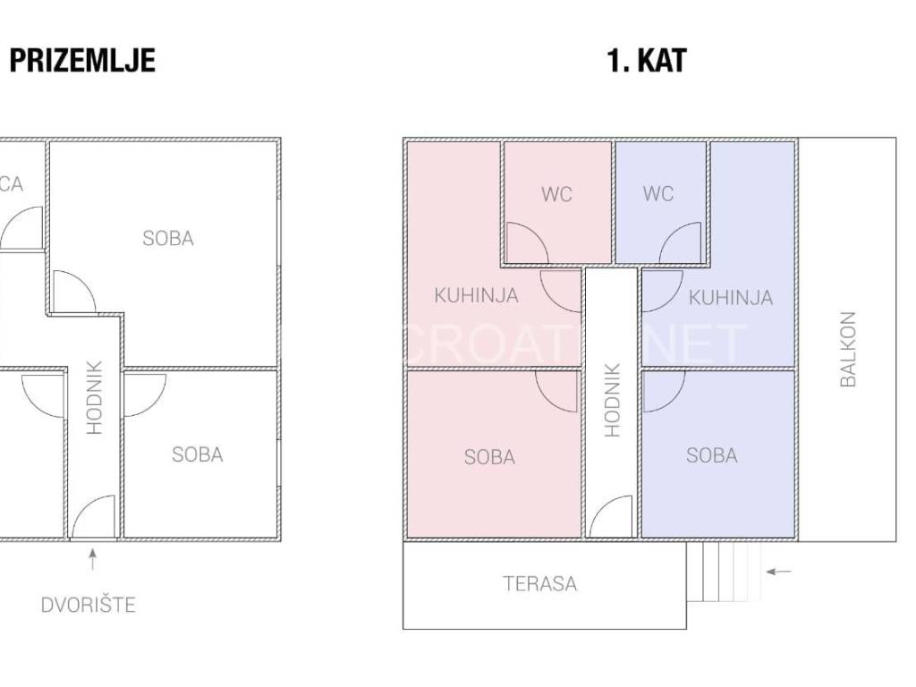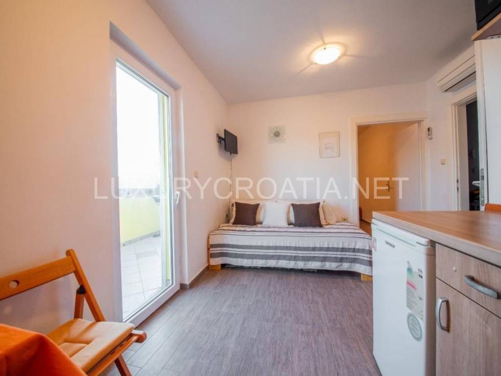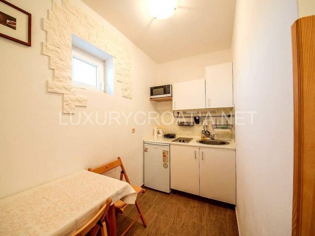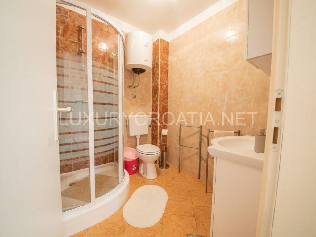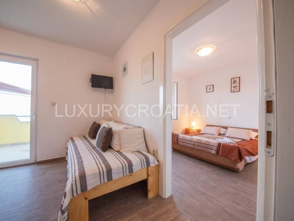 House is completely renovated recently. On the ground floor there is an apartment with two bedrooms, and external stairs lead to the first floor where are 2 apartments, each with separate bedroom, and with terraces overlooking the beach and mountain Velebit.